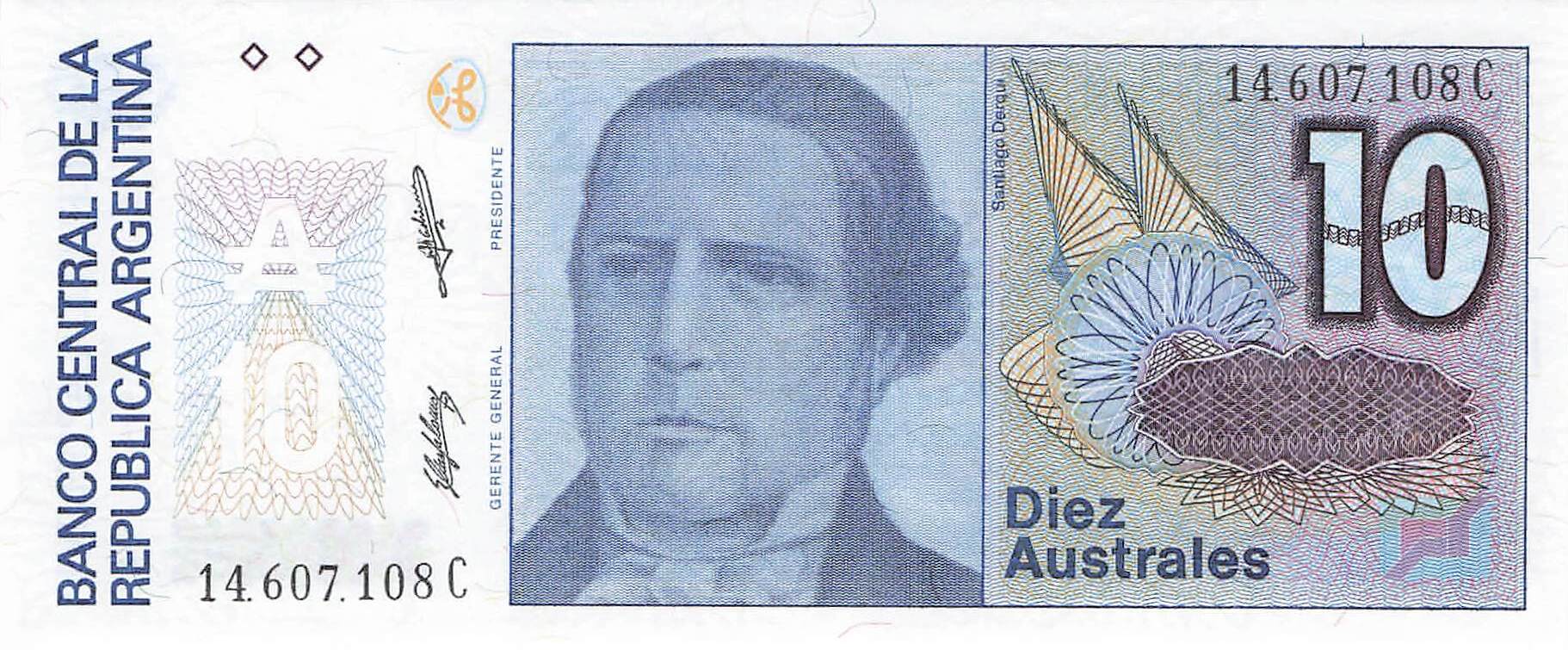 Argentinien P.325b C - 10 Australes 1985 UNC