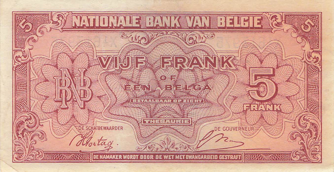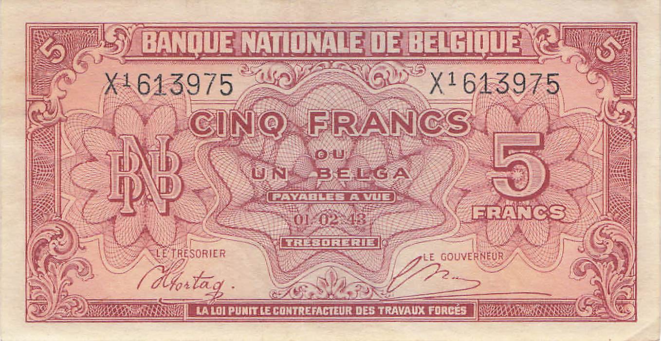 Belgien P.121 - 5 Franc 1943 XF-