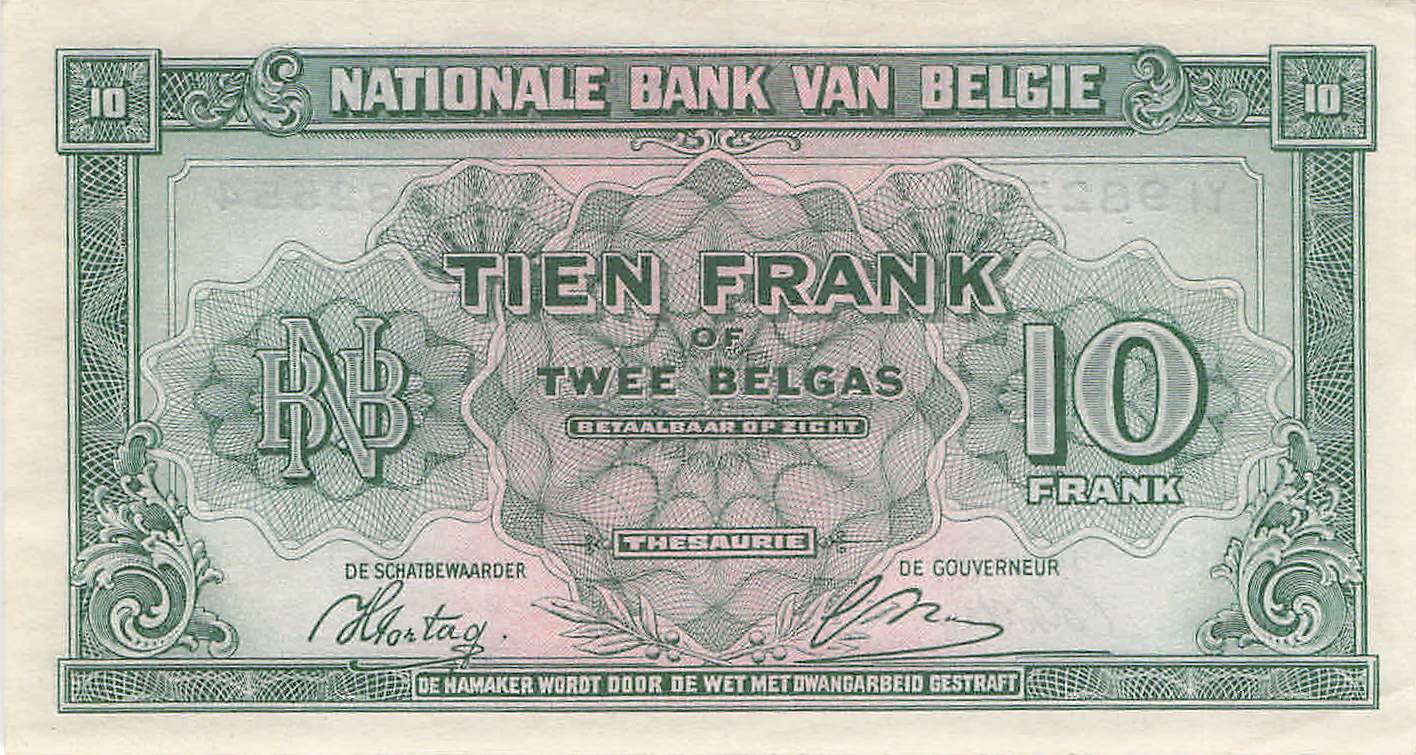 Belgien P.122 -10 Franc 1943 XF