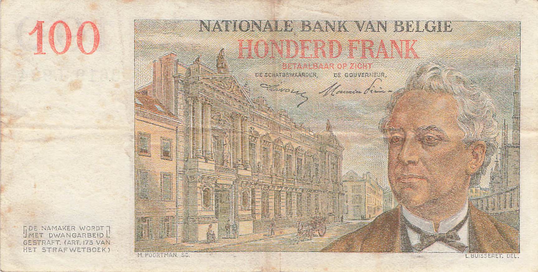 Belgien P.129a - 100 Franc 22.05.1953 VF-