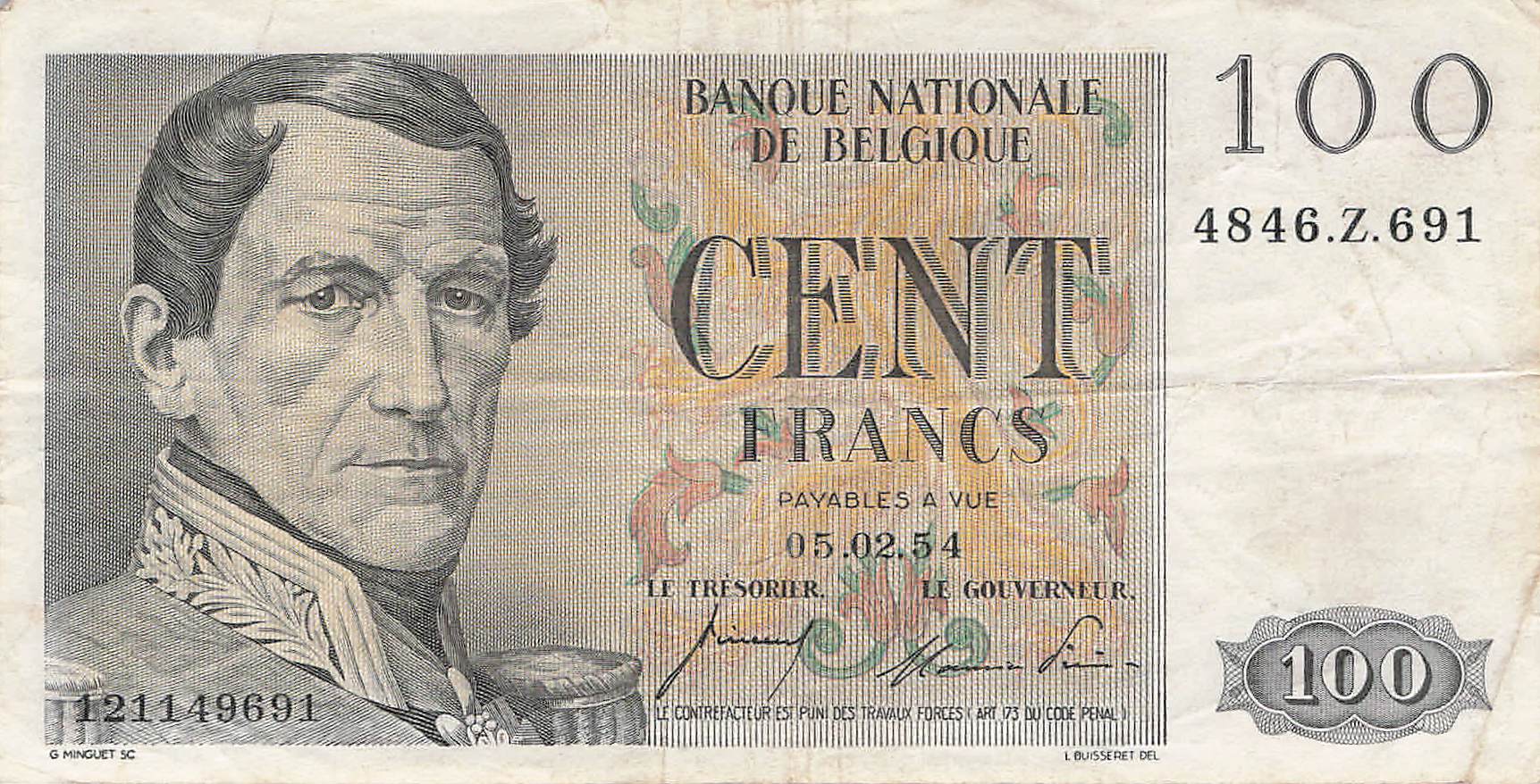 Belgien P.129b - 100 Franc 05.02.1954 VF
