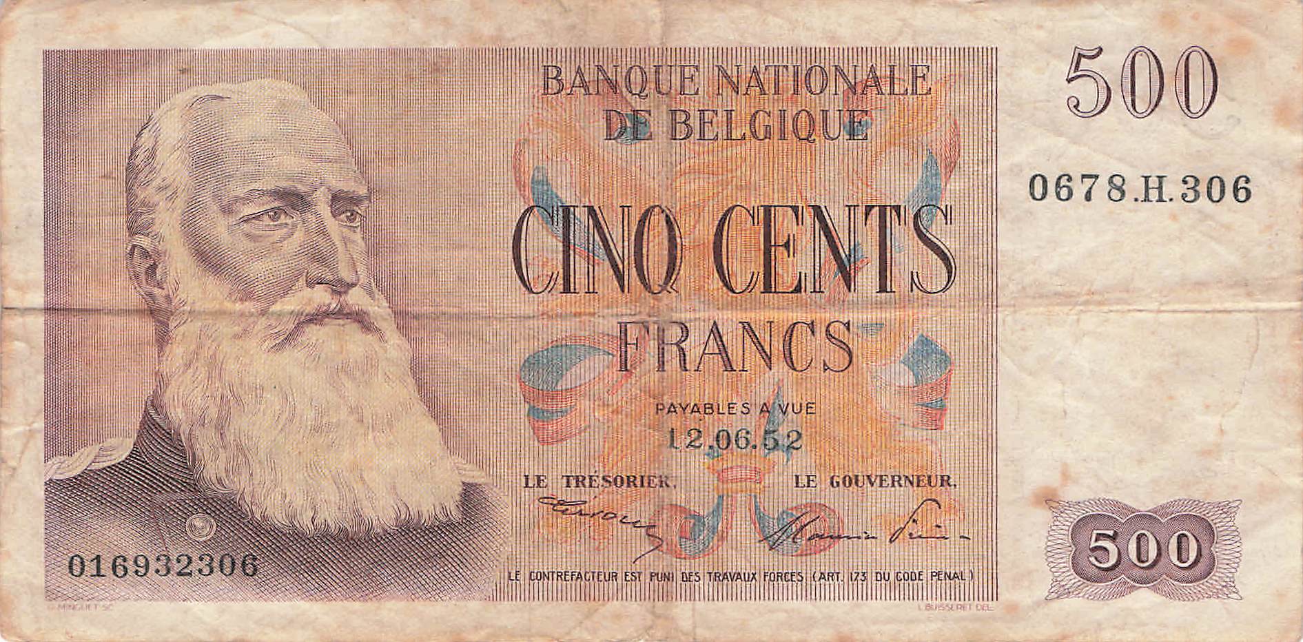 Belgien P.130a-1 - 500 Franc 12.06.1952 F