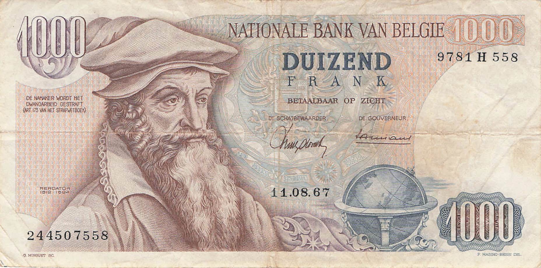 Belgien P.136a - 1000 Franc 11.08.1967 F+