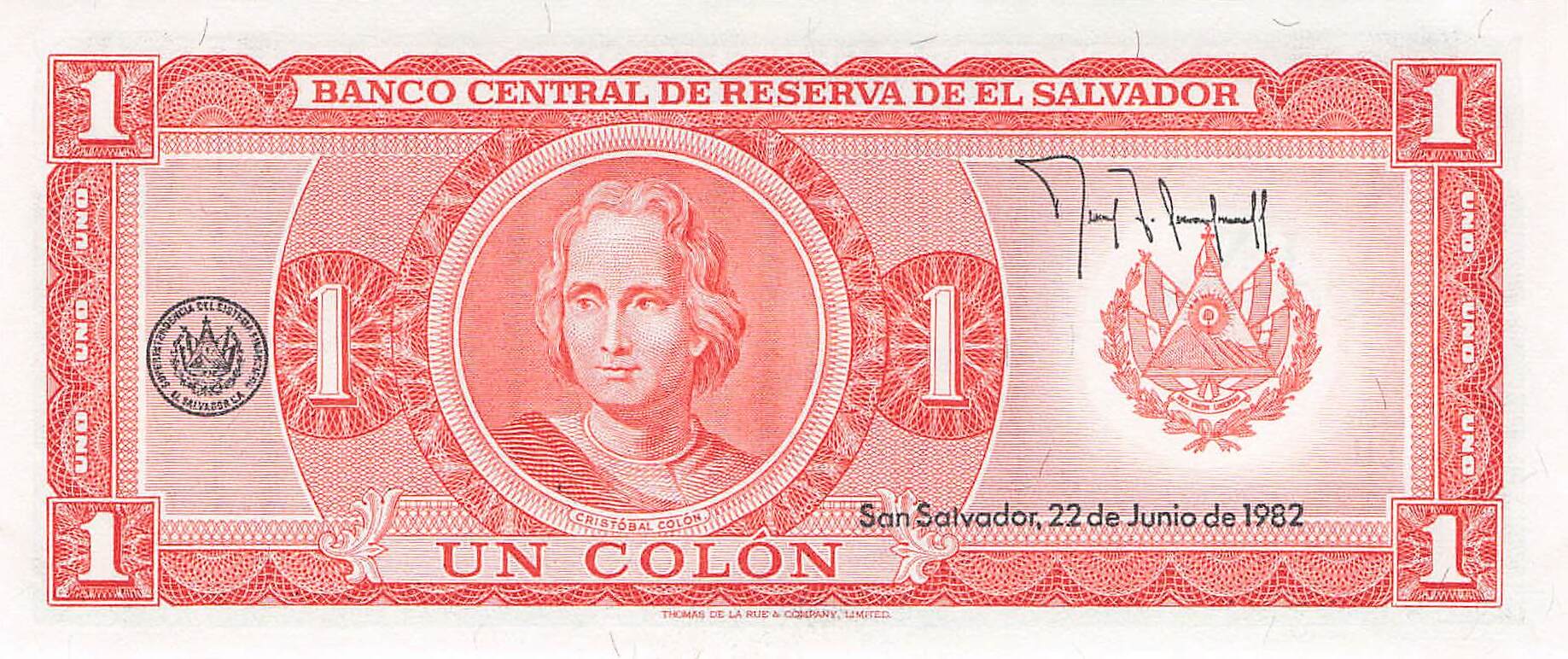 El Salvador P.133A - 1 Colon 22.06.1982 UNC