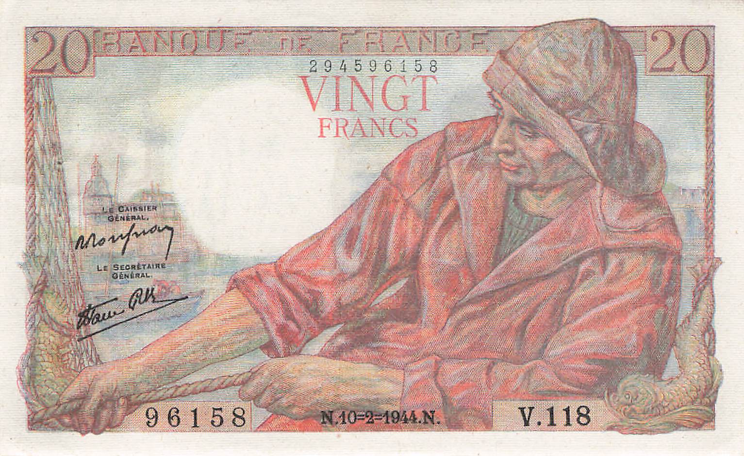 Frankreich P.100a - 20 Francs 10.02.1944 XF