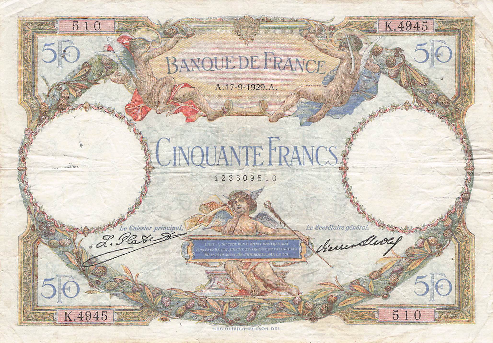 Frankreich P.077a - 50 Francs 17.09.1929 F