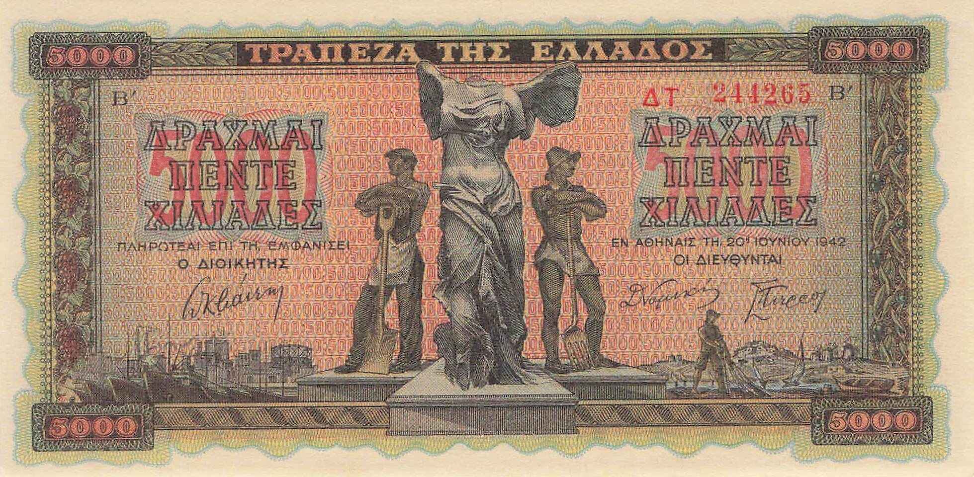 Griechenland P.119a-1 - 5000 Drachme 20.06.1942 UNC