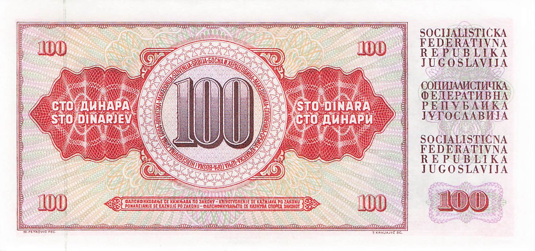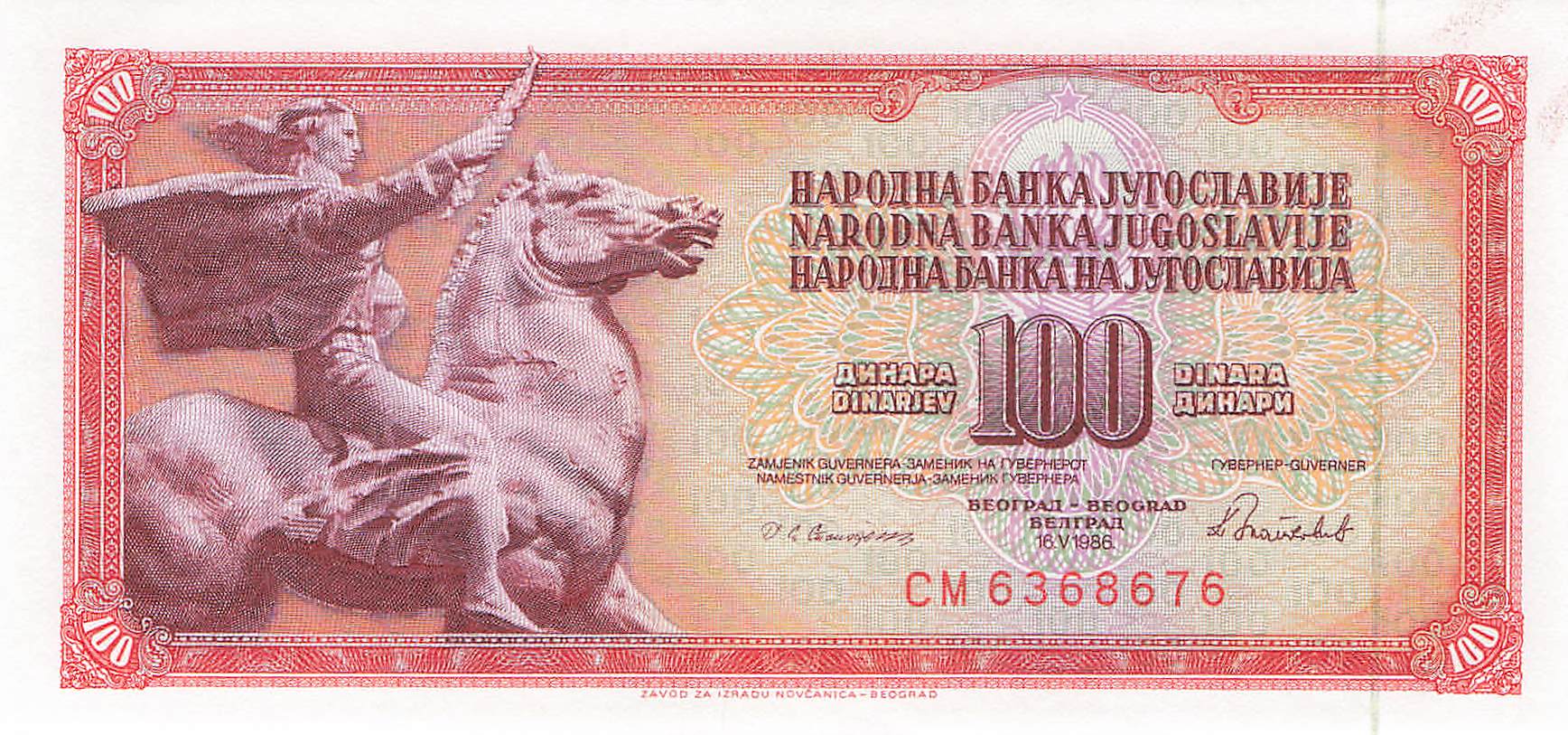 Jugoslawien P.090c - 100 Dinara 1986 UNC
