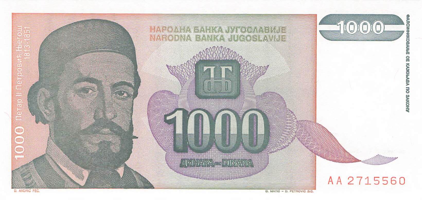 Jugoslawien P.140 - 1000 Dinara 1994 UNC