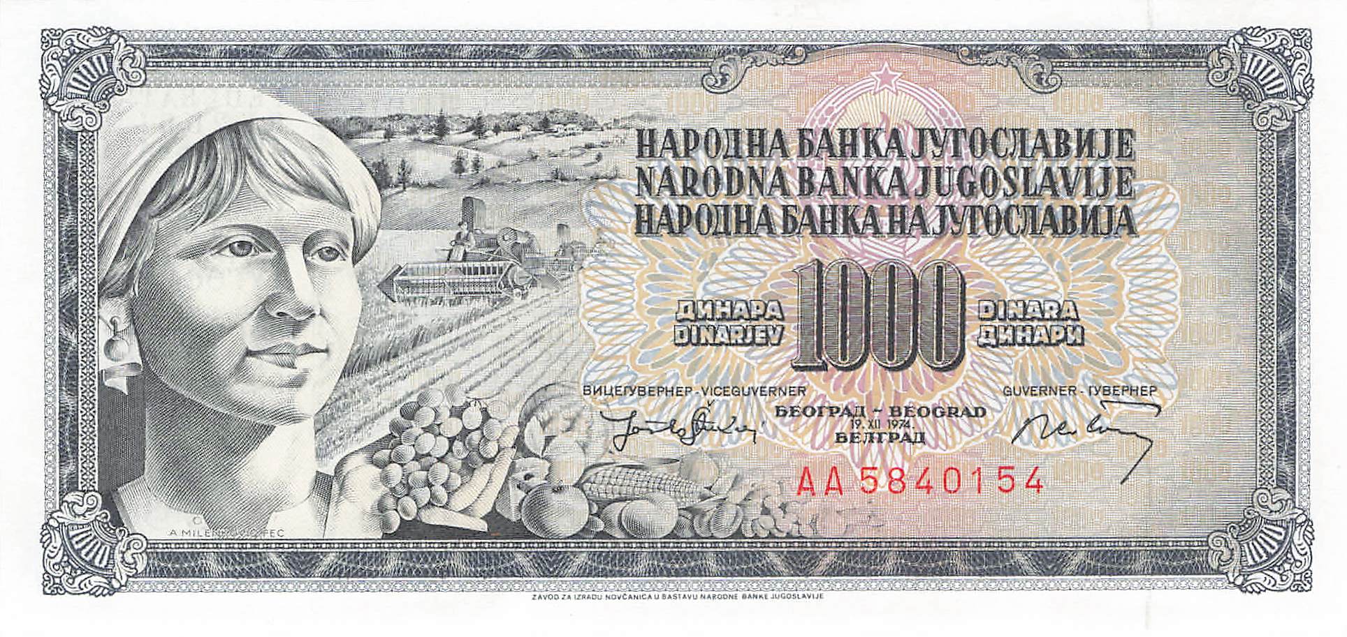 Jugoslawien P.086 - 1000 Dinara 1974 UNC