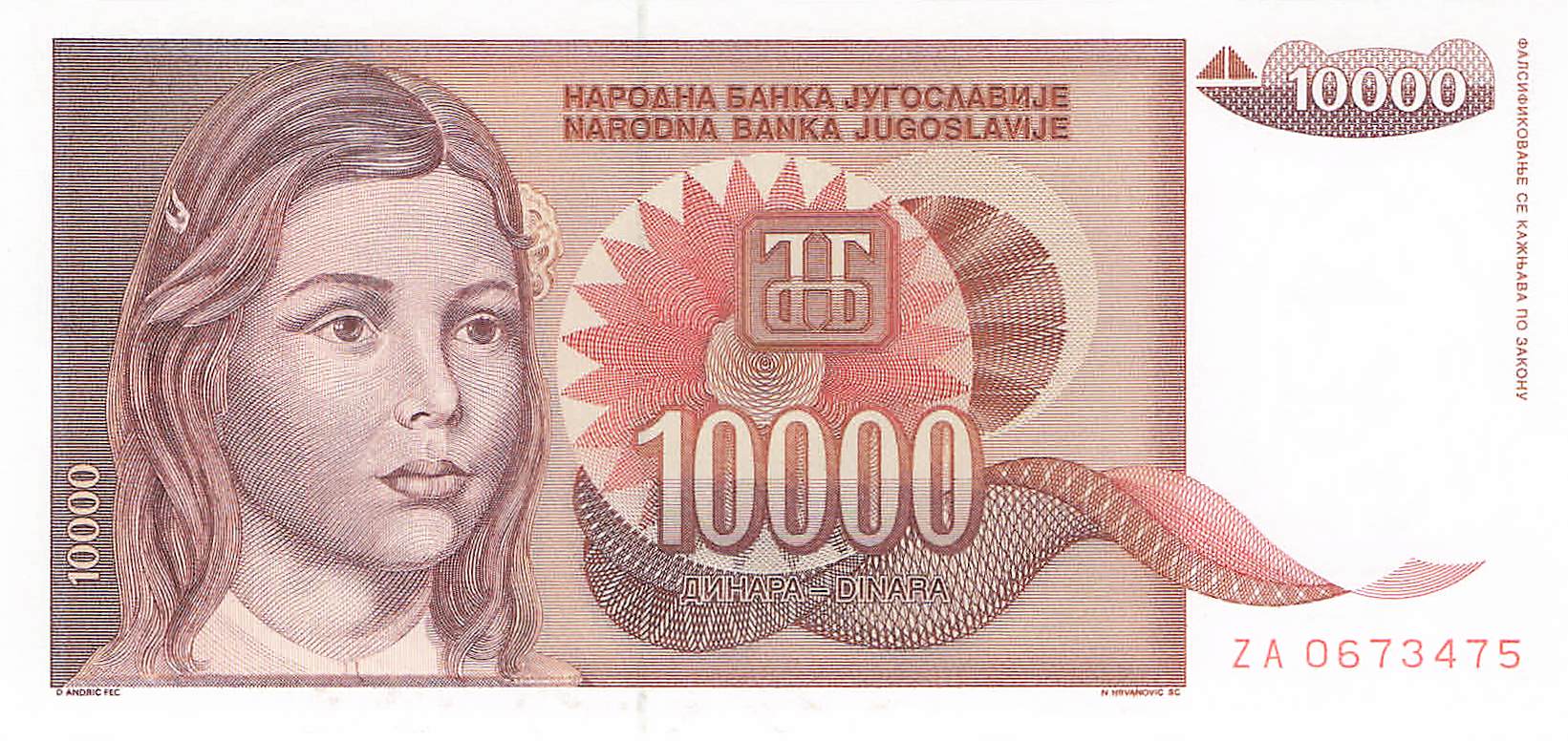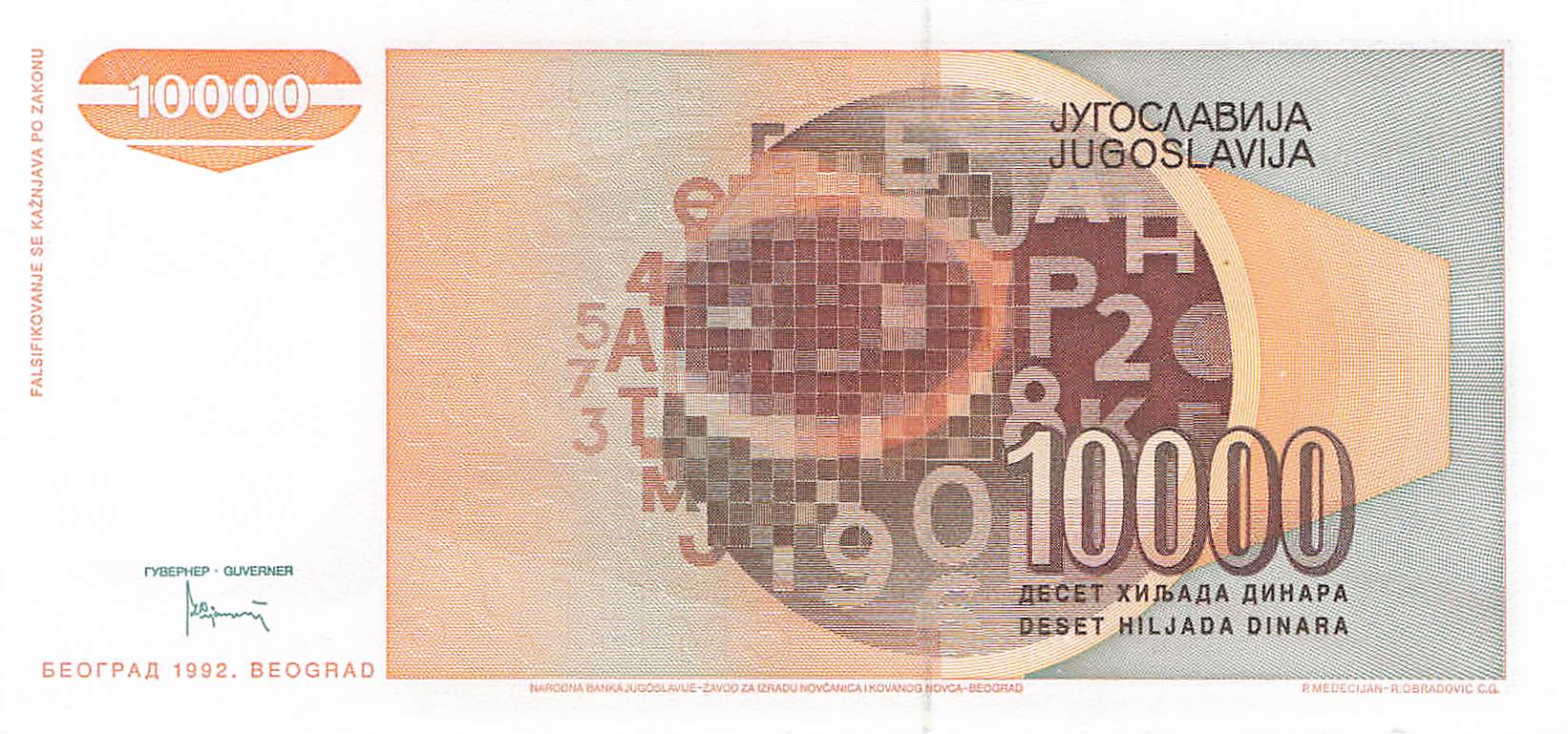 Jugoslawien P.116a - 10.000 Dinara 1992 UNC Ersatzbanknote