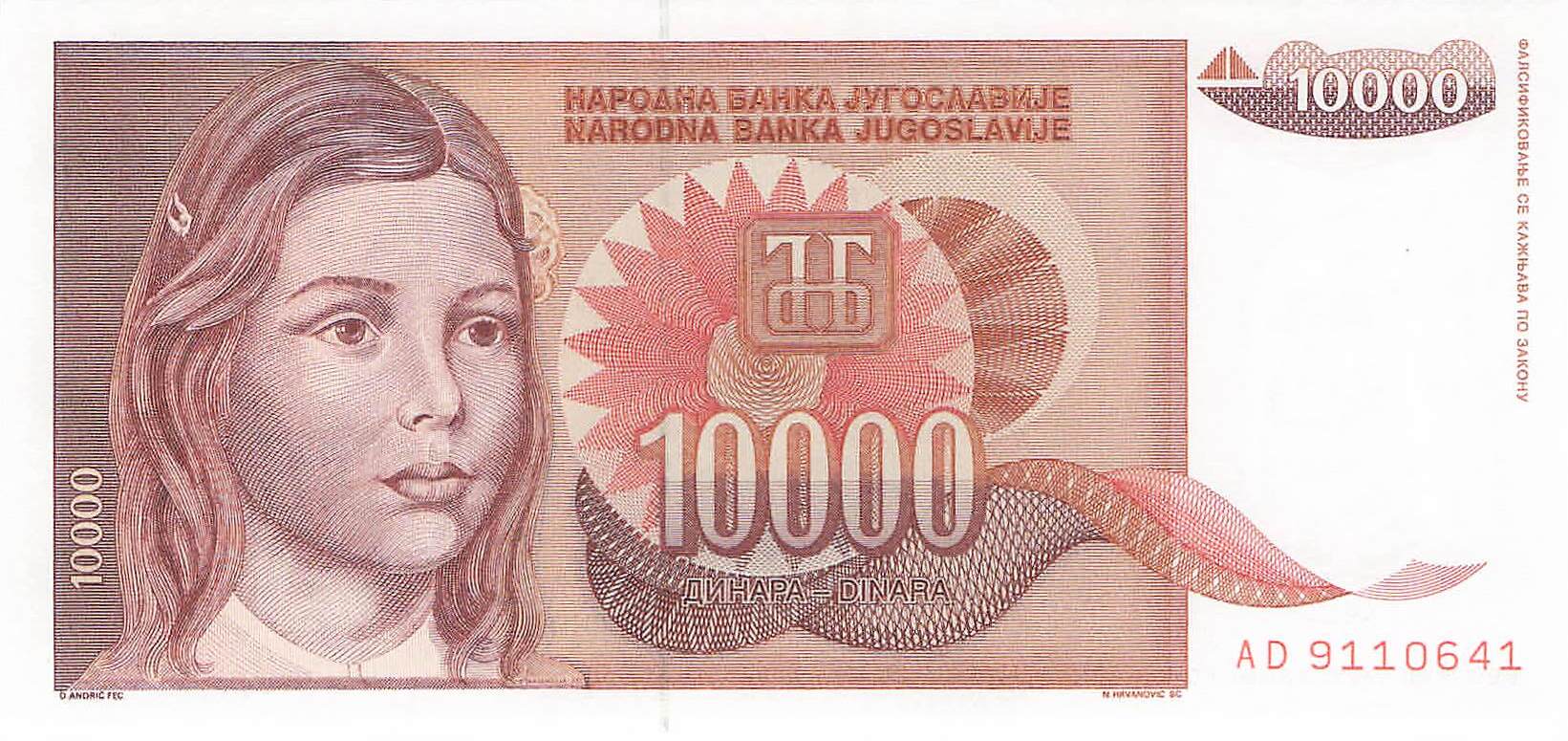 Jugoslawien P.116a - 10.000 Dinara 1992 UNC