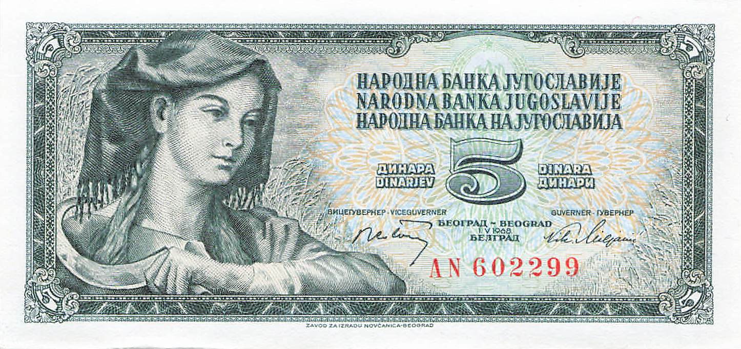 Jugoslawien P.081a - 5 Dinara 1968 UNC
