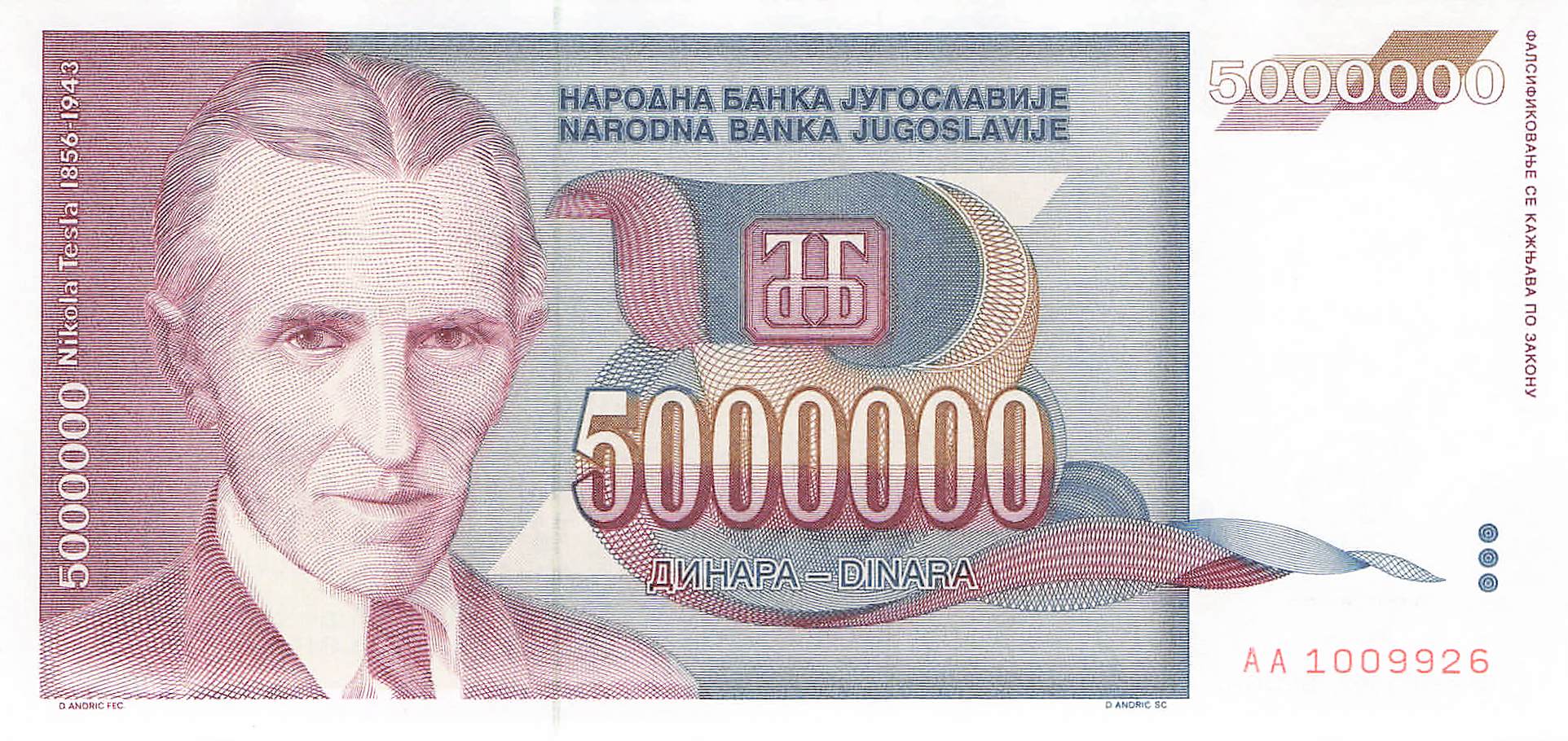 Jugoslawien P.121 - 5 Millionen Dinara 1993 UNC