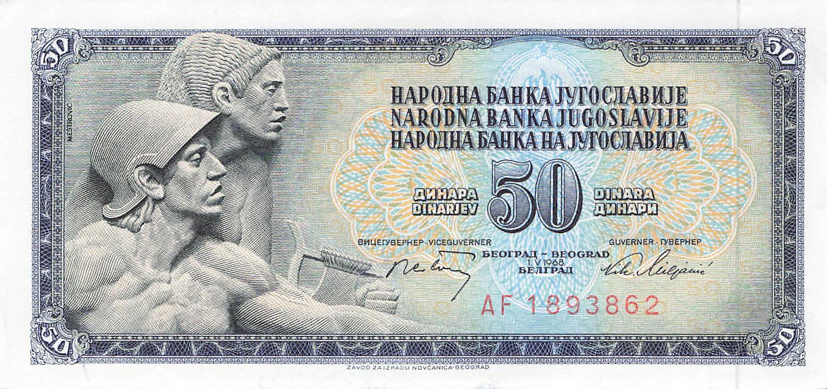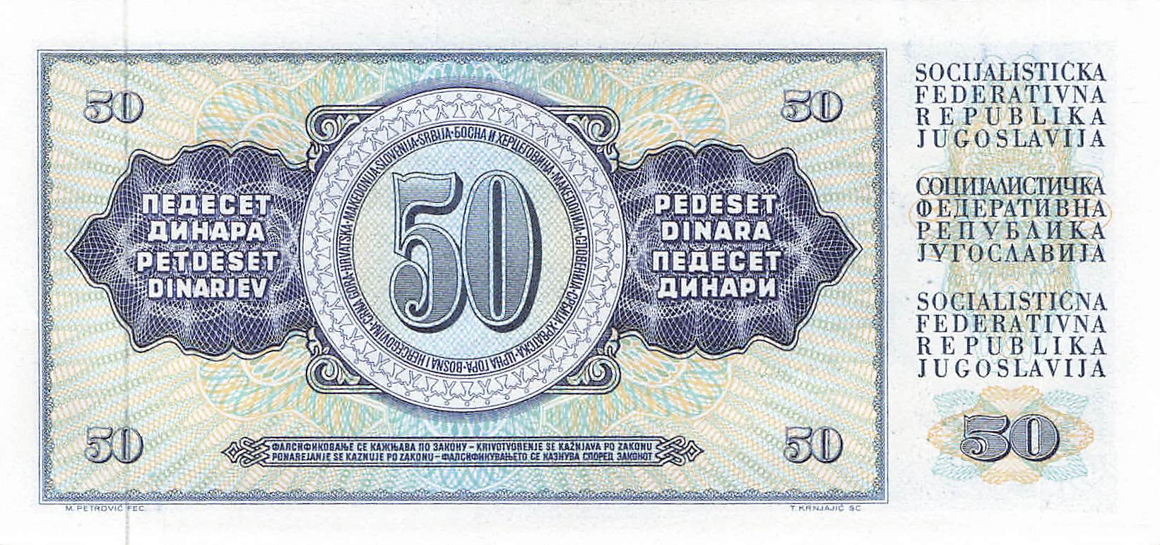 Jugoslawien P.083c - 50 Dinara 1968 UNC