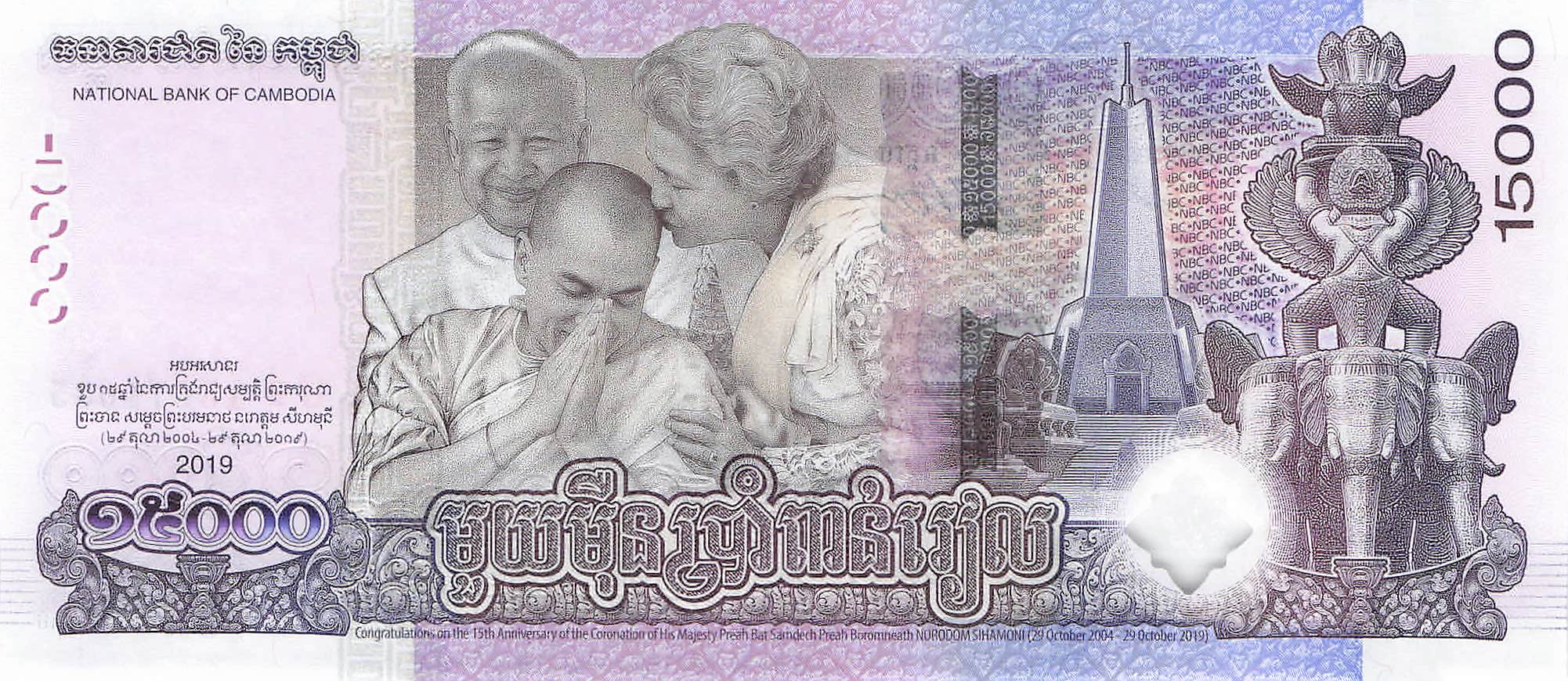 Kambodscha P.072a - 15.000 Riels 2019 UNC Gedenkbanknote