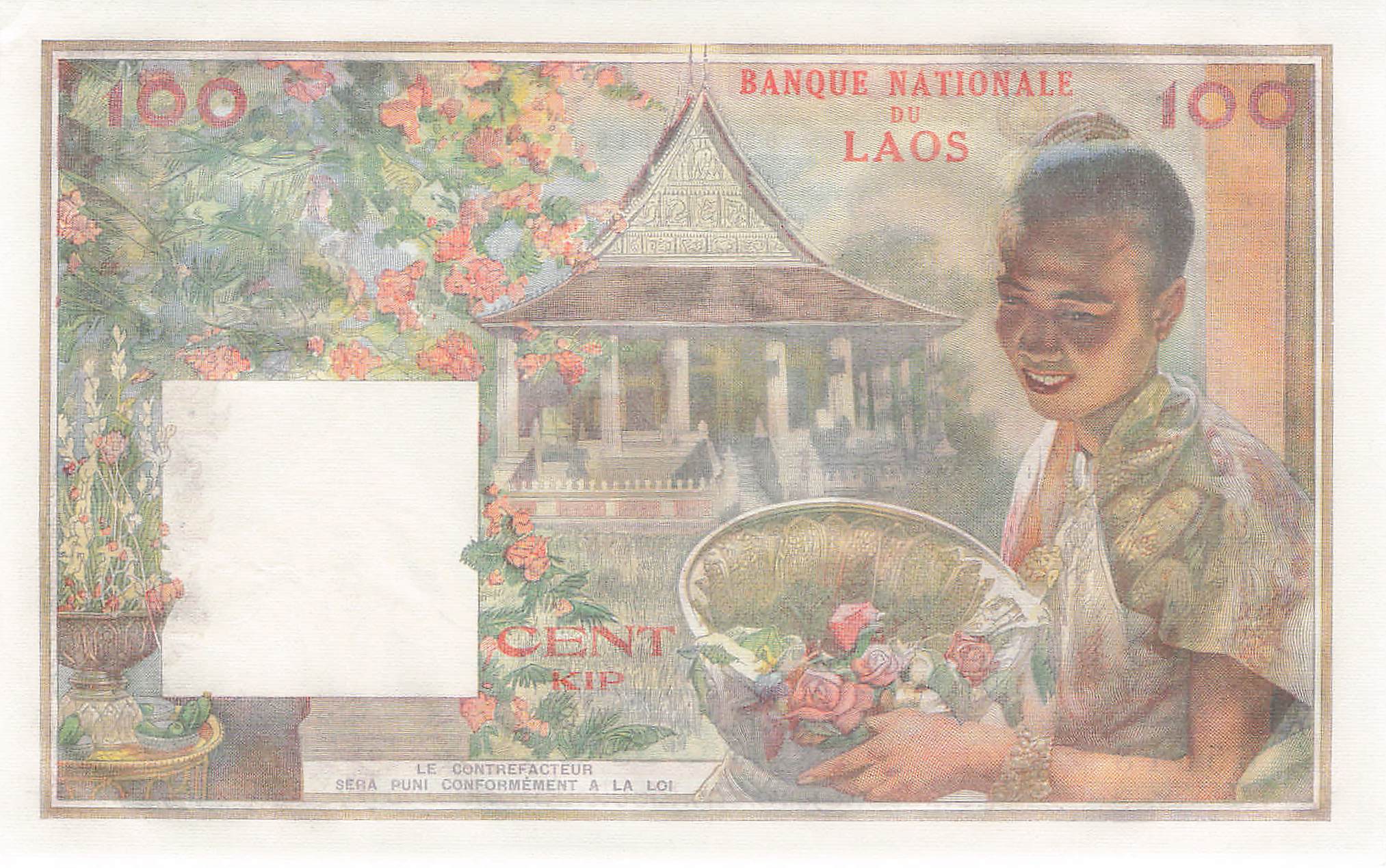 Laos P.006 - 100 Kip 1957 UNC-