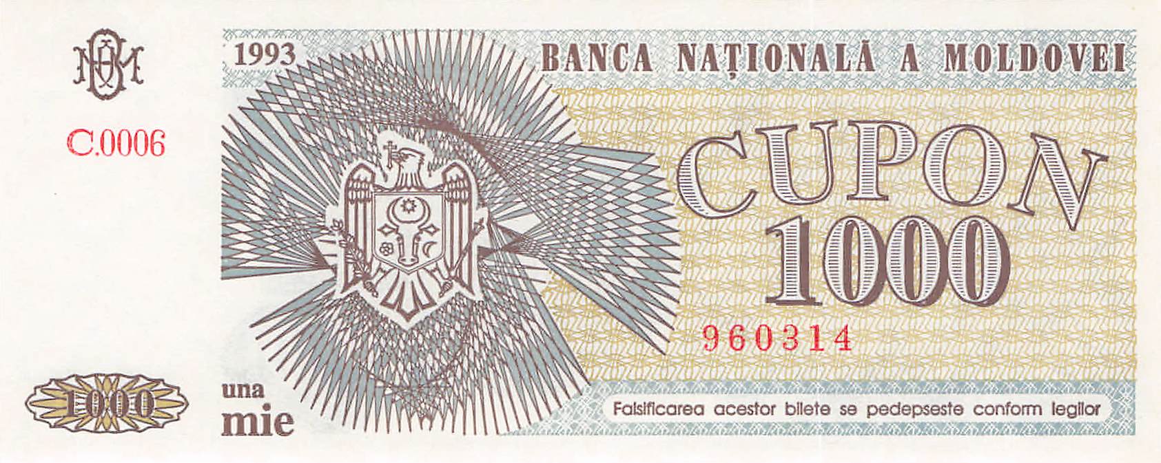 Moldawien P.003 - 1000 Cupon 1993 UNC