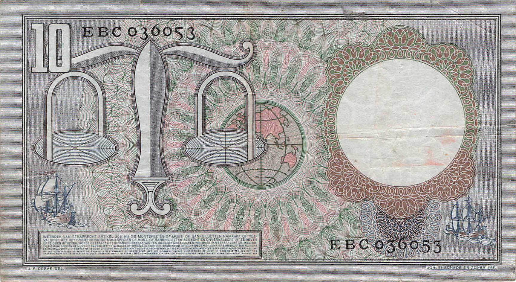 Niederlande P.085 - 10 Gulden 23.03.1953 VF