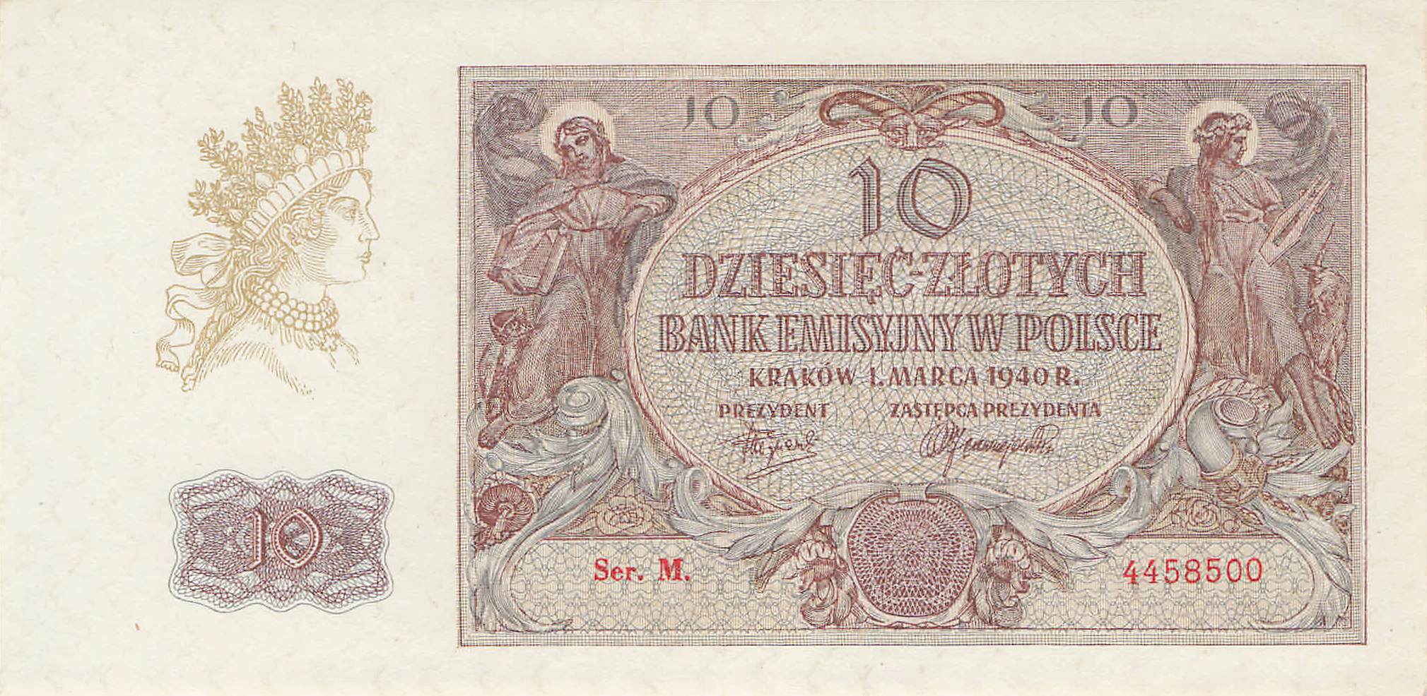 Polen P.094-2 - 10 Zloty 01.03.1940 UNC Ro.574b