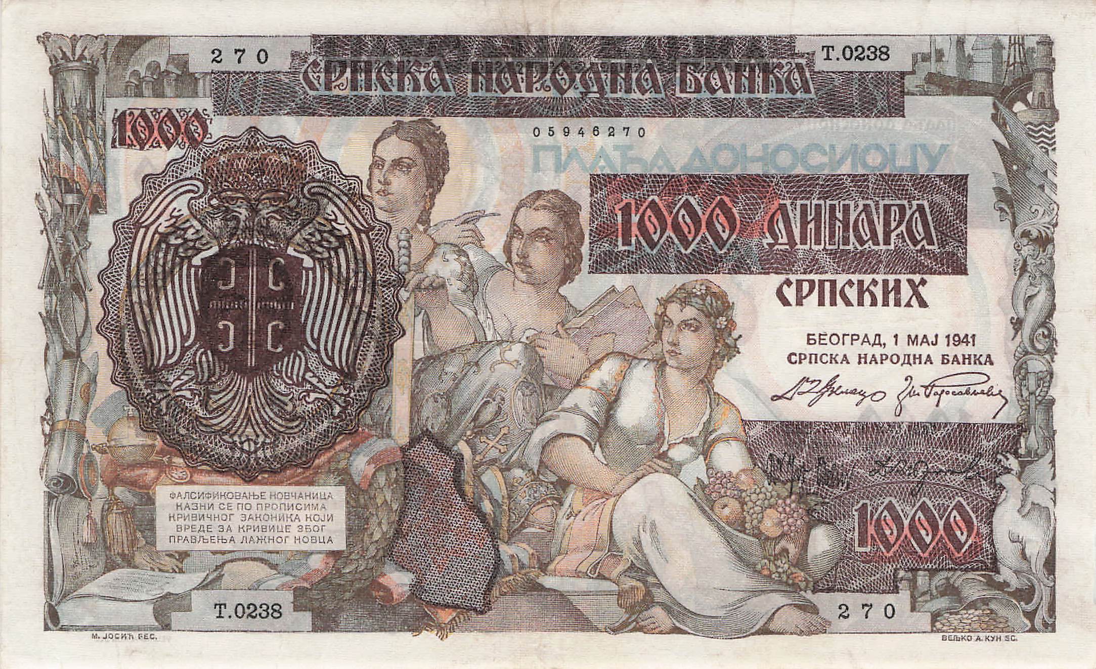 Serbien P.024 - 1000 Dinara 1941 VF Ro.602