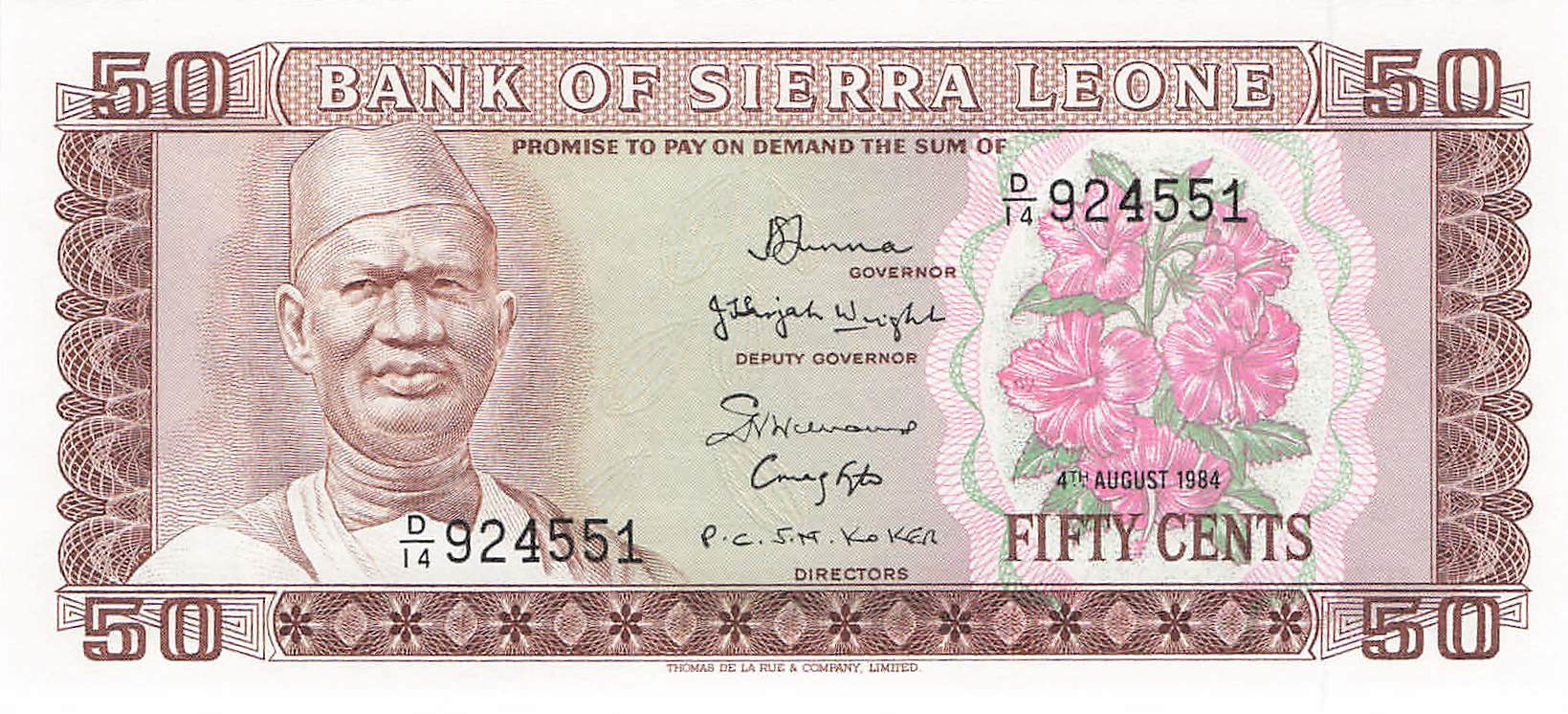 Sierra Leone P.004e - 50 Cents 1984 UNC
