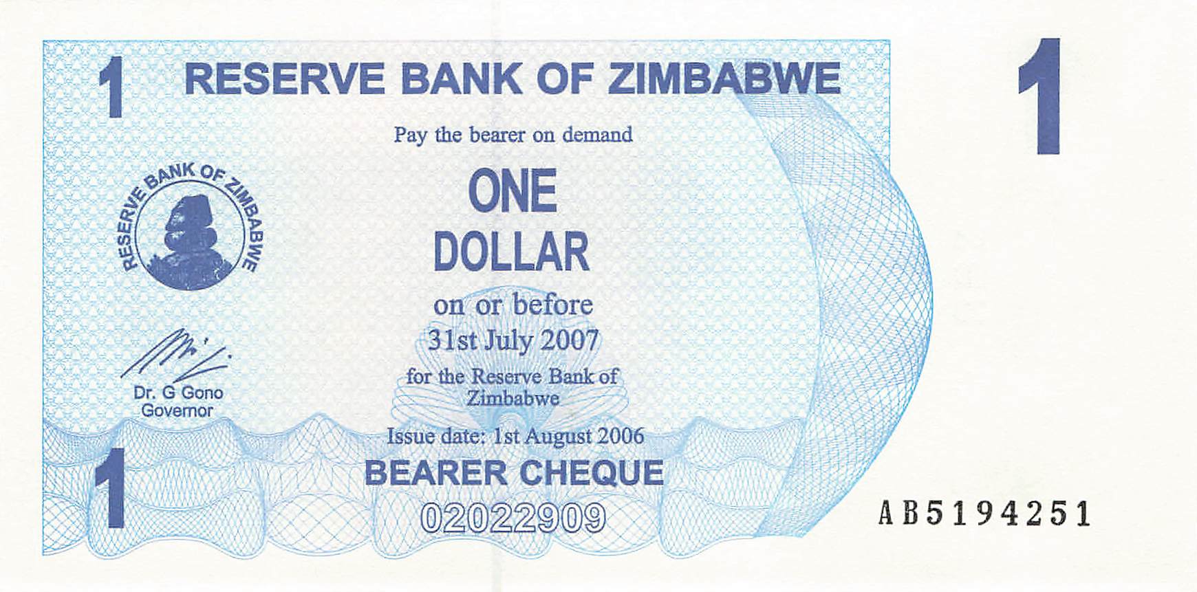 Simbabwe P.037 - 1 Dollar 2006 UNC