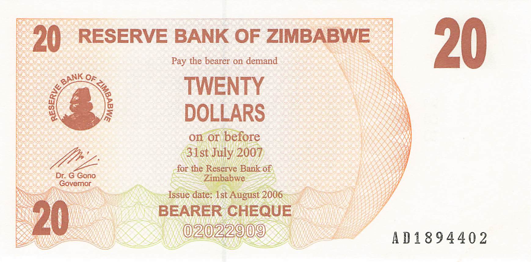 Simbabwe P.040 - 20 Dollars 2006 UNC