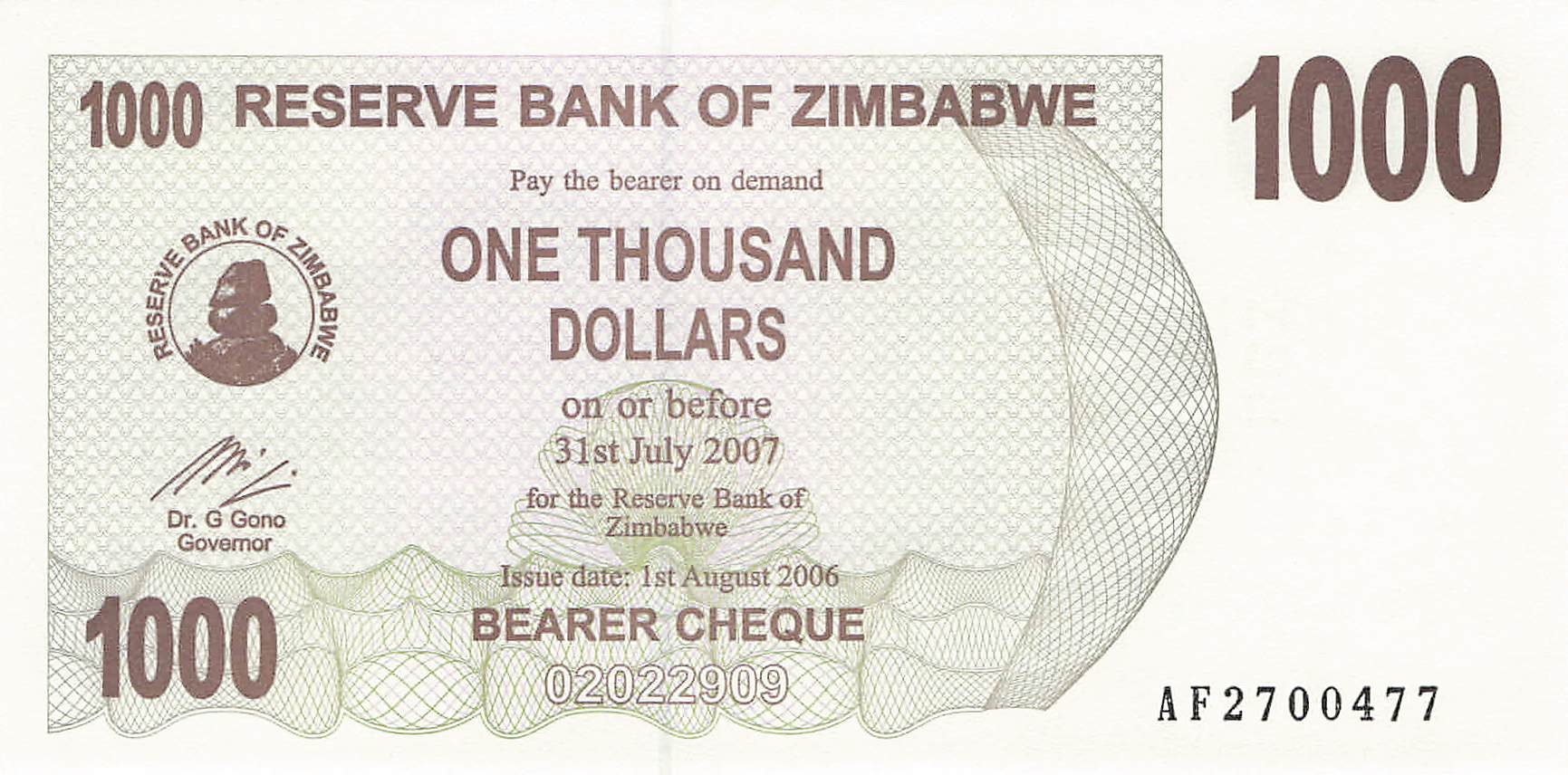 Simbabwe P.044 - 1000 Dollars 2006 UNC