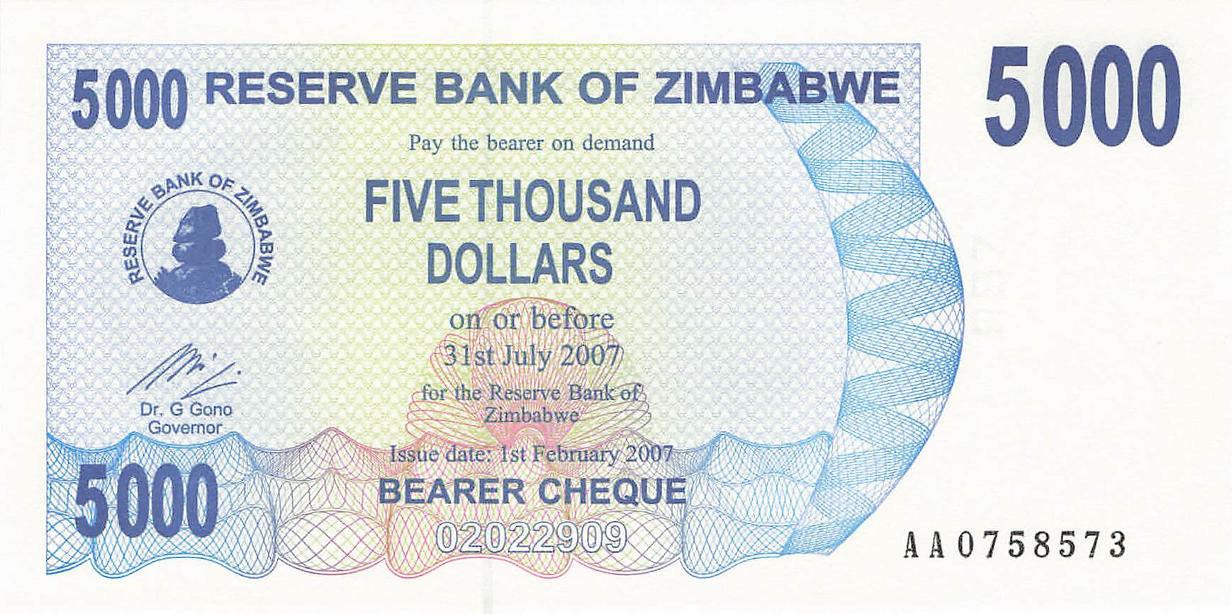 Simbabwe P.045 - 5000 Dollars 2007 UNC