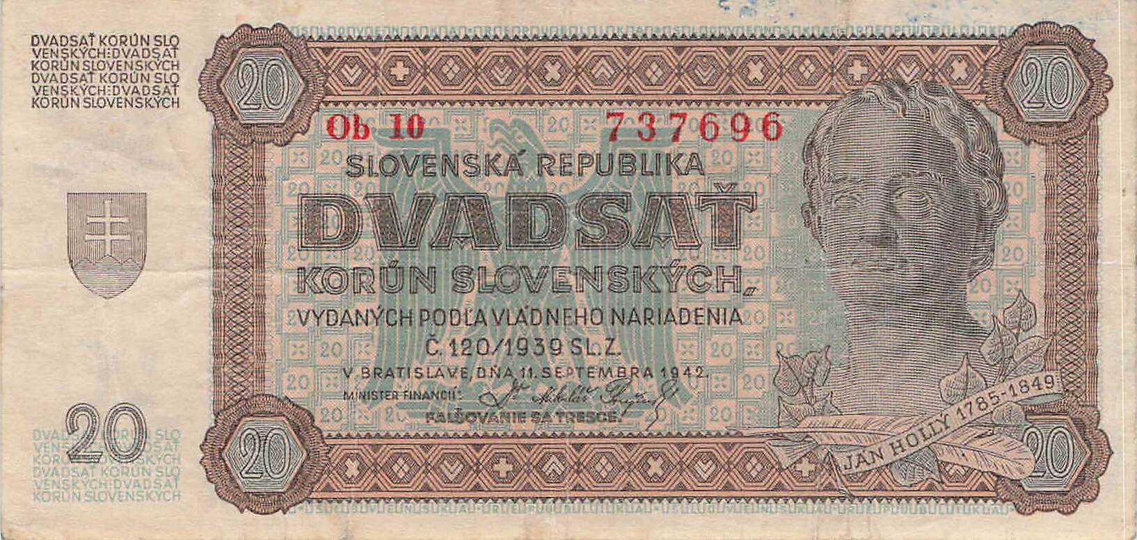 Slowakei P.007 Ob - 20 Korun 1942 VF-