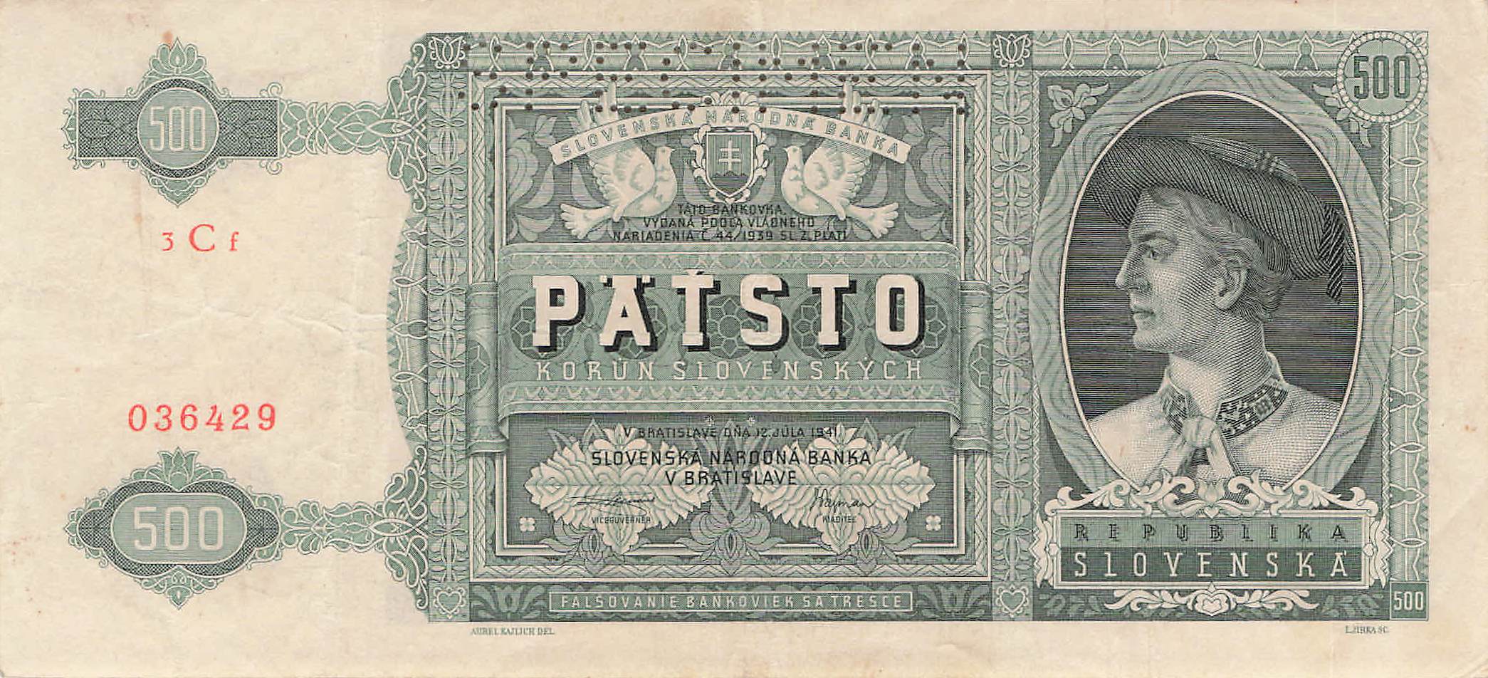 Slowakei P.012 Cf Specimen - 500 Korun 1941 VF