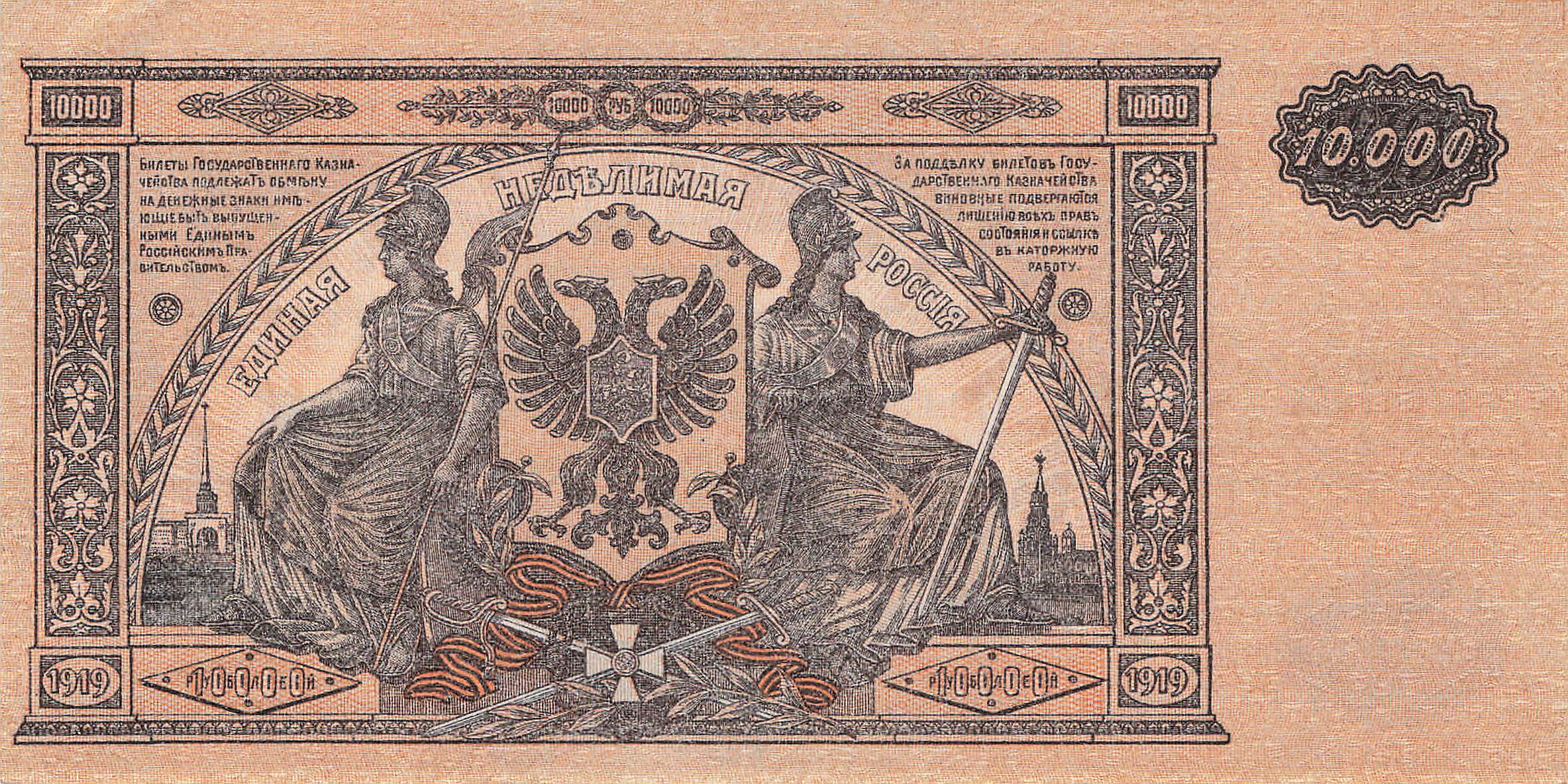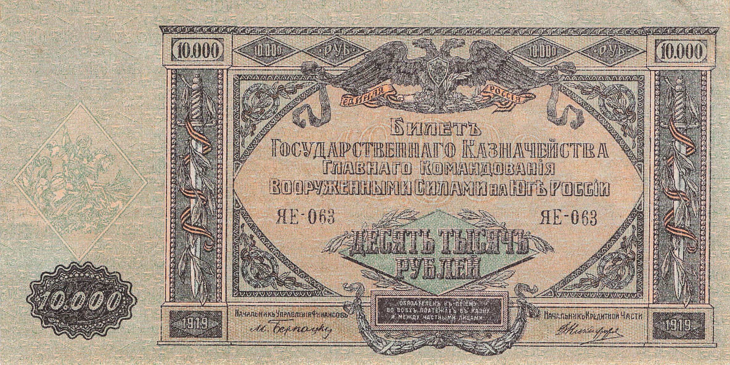 Oberkommando der Südstreitkräfte P.S425 JAE - 10000 Rubel 1919 UNC