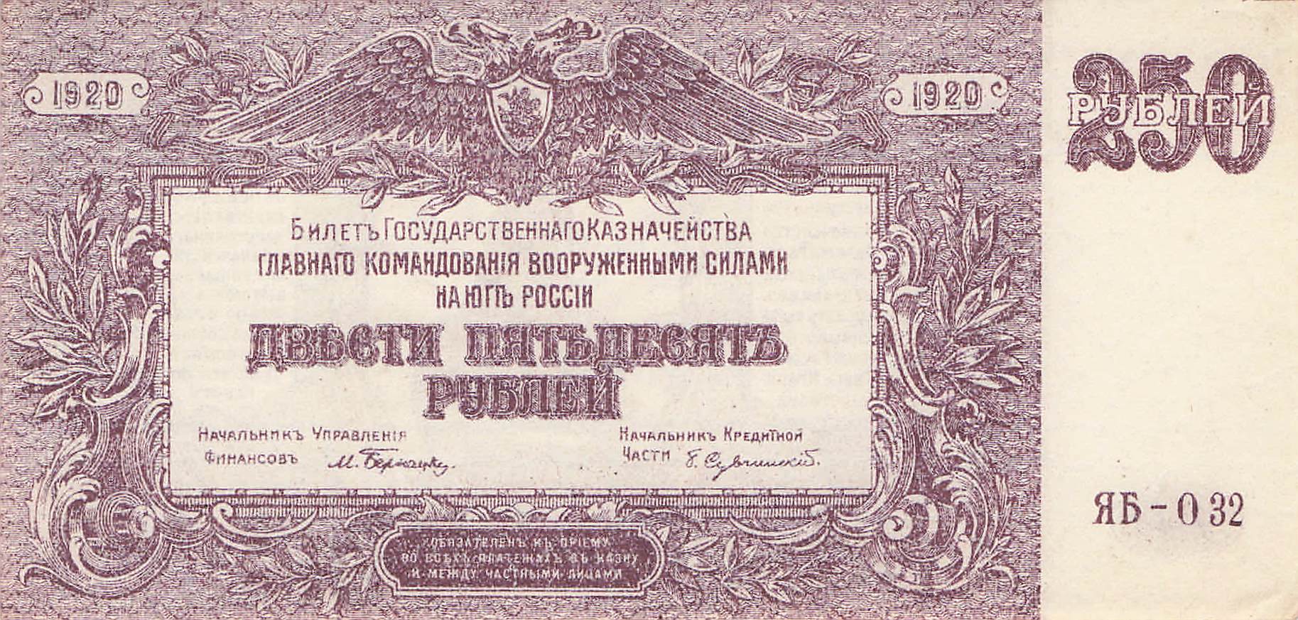Südrussland Schatzschein P.S433c JAB - 250 Rubel 1920 XF+
