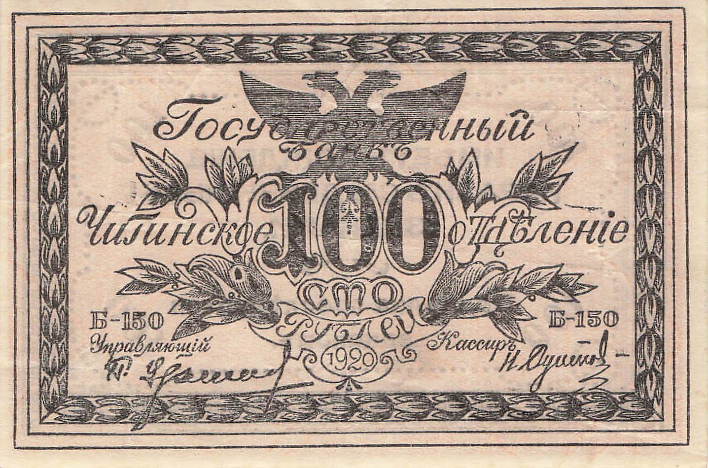 Region Chita P.S1187b B - 100 Rubel 1920 VF+
