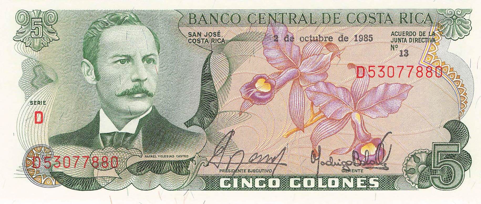 Costa Rica P.236d-17 - 5 Colones 2.10.1985 UNC