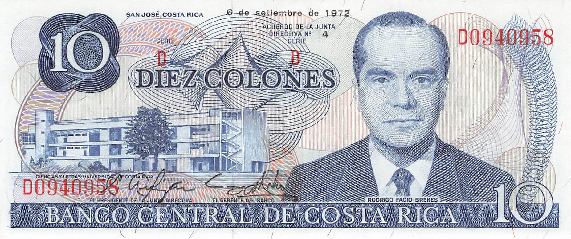 Costa Rica P.237a - 10 Colones 6.9.1972 UNC