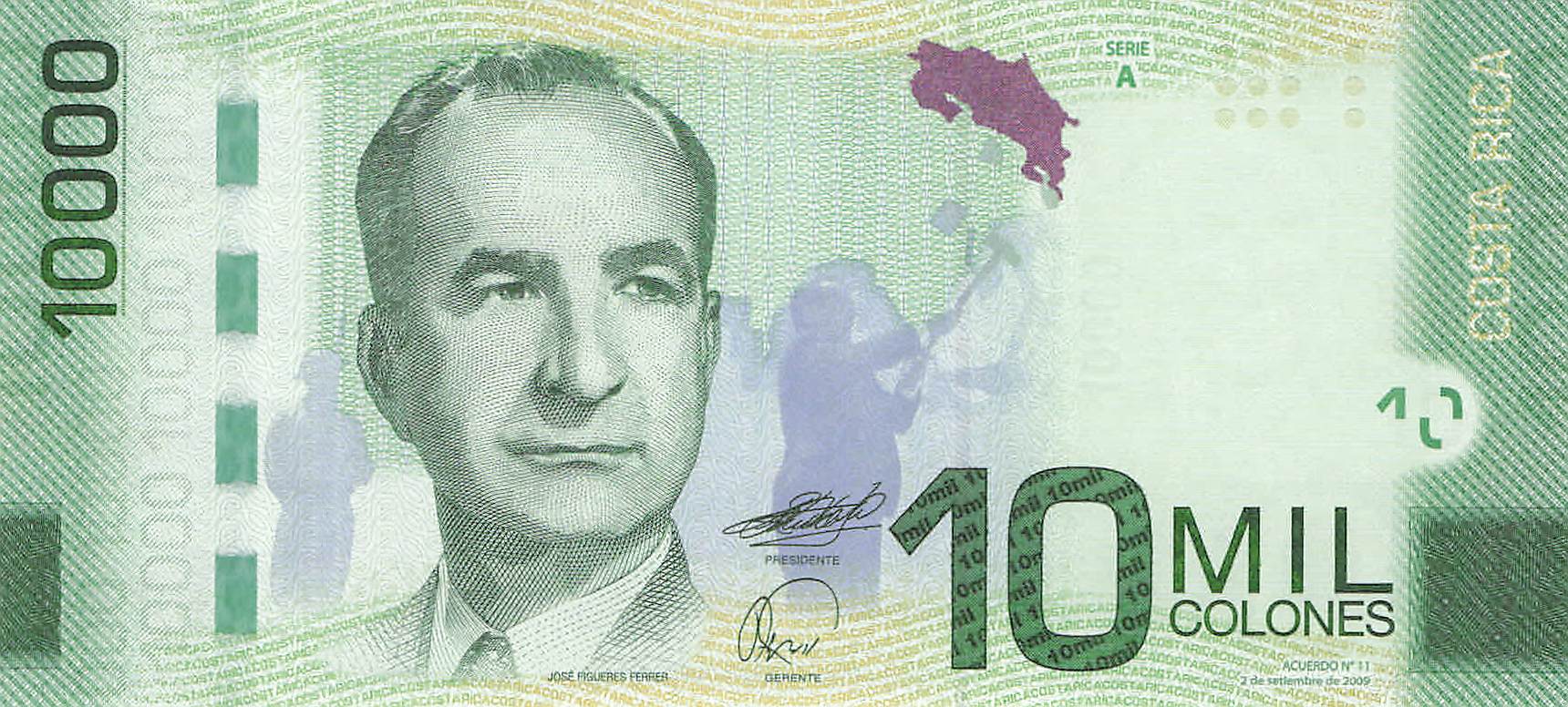Costa Rica P.277a - 10.000 Colones 2.9.2009 UNC