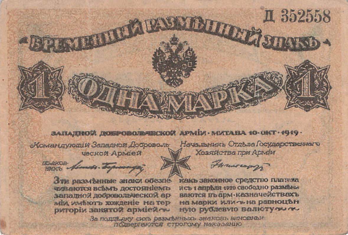 Freiwillige Westarmee P.S226a D - 1 Marka 1919 VF Mil-01