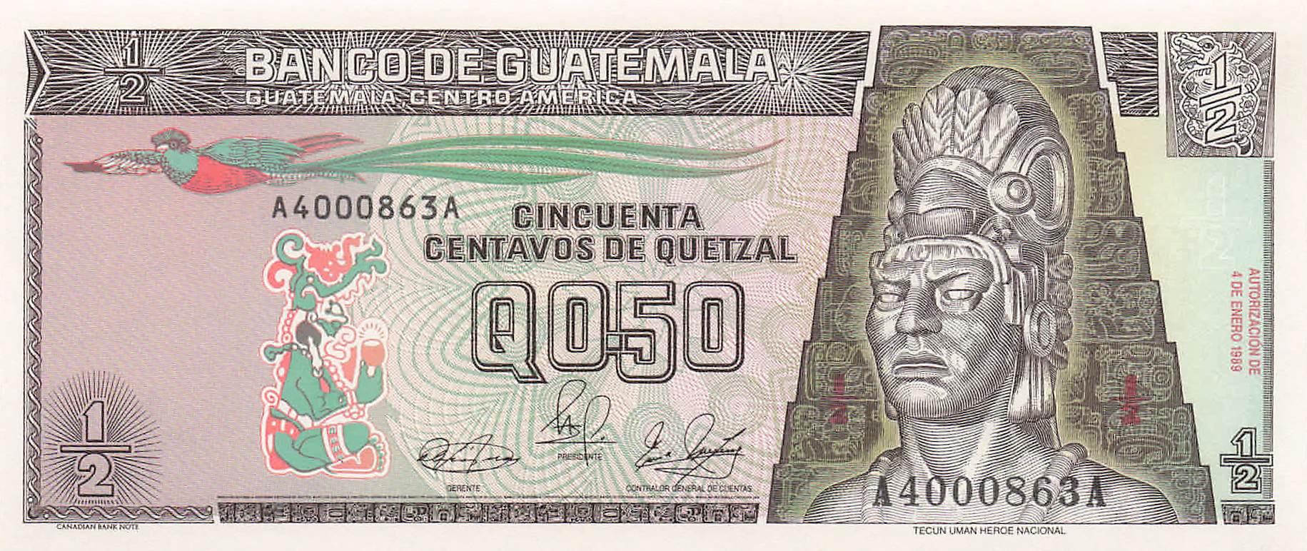 Guatemala P.072a - 0,50 Quetzal 04.01.1989 UNC