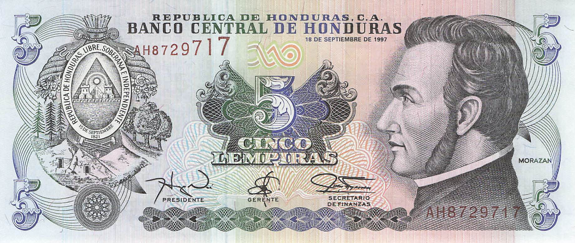 Honduras P.081b - 5 Lempiras 18.09.1997 UNC