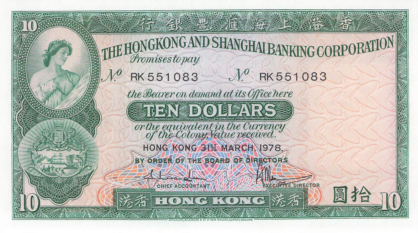 Hongkong P.182h - 10 Dollar 1978 UNC