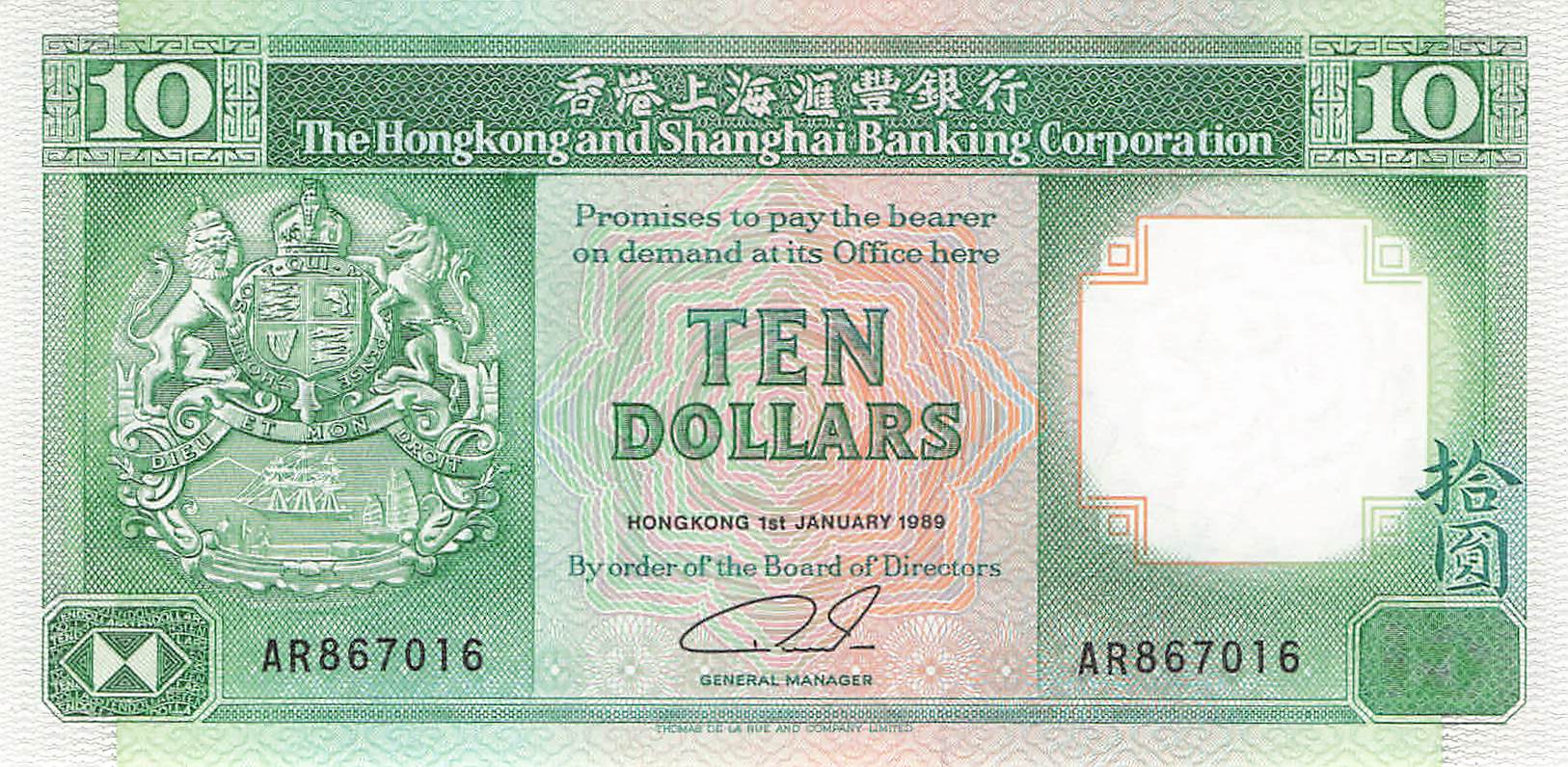 Hongkong P.191c - 10 Dollar 1991 UNC