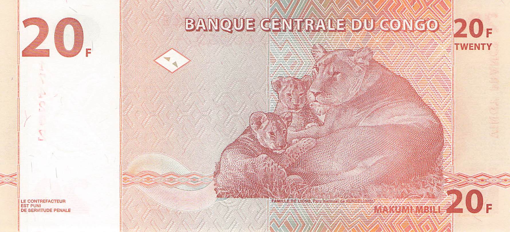 Kongo P.088A - 20 Francs 01.11.1997 UNC Ersatzbanknote