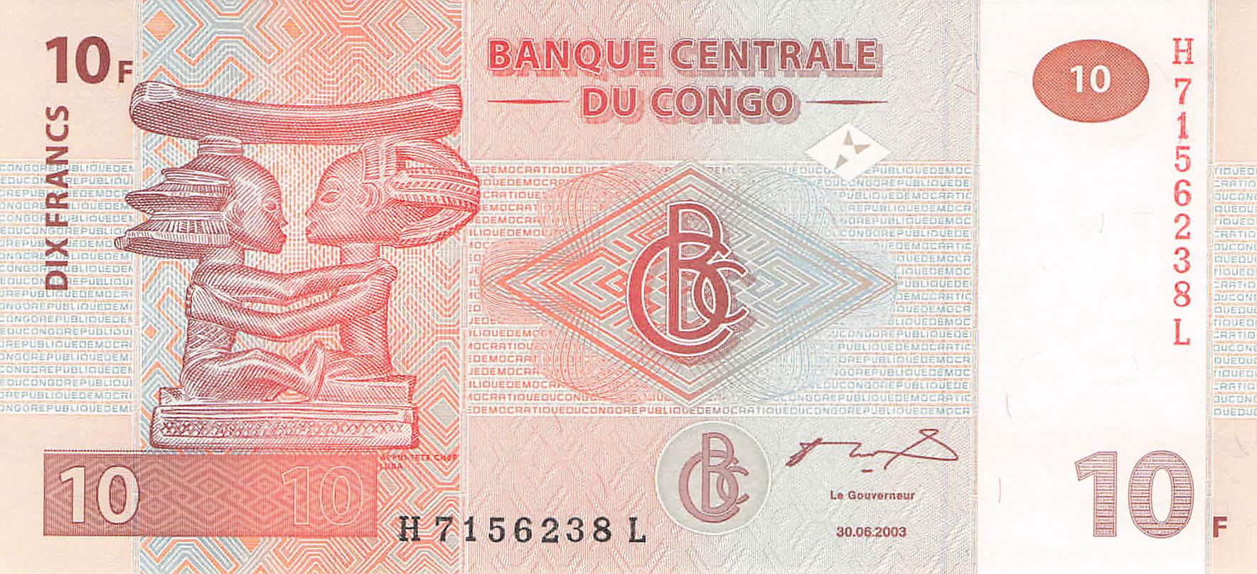 Kongo P.093A - 10 Francs 30.06.2003 UNC