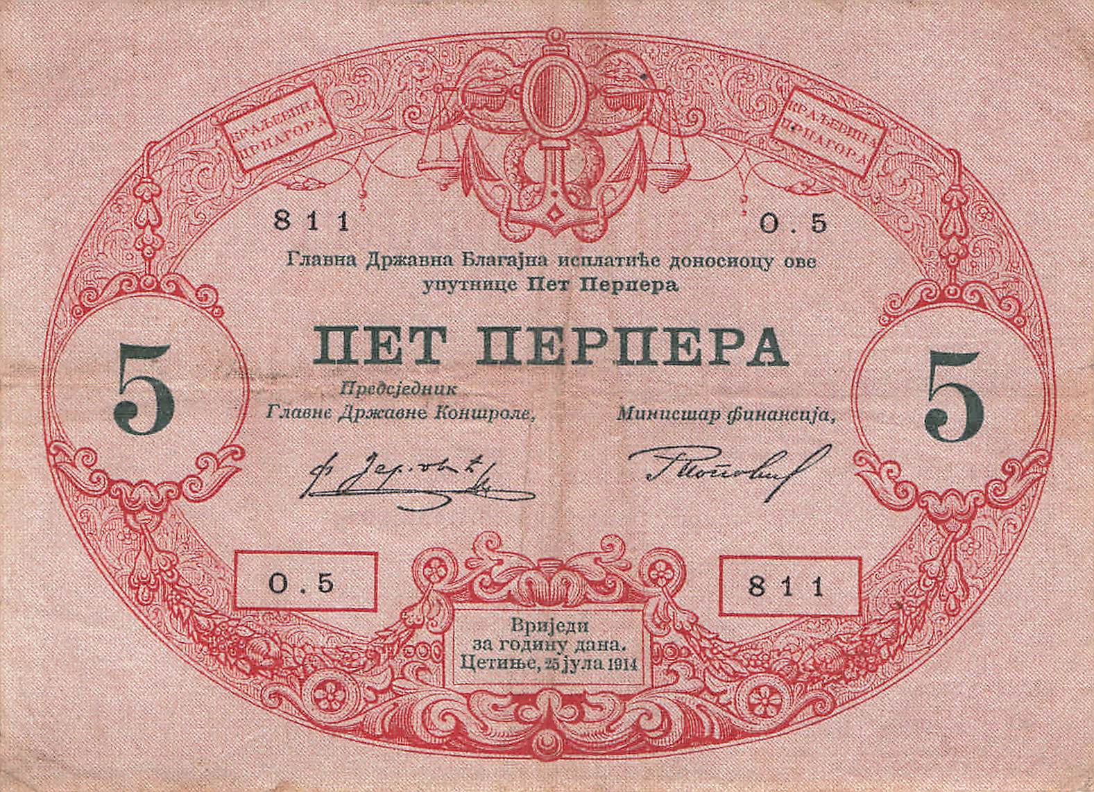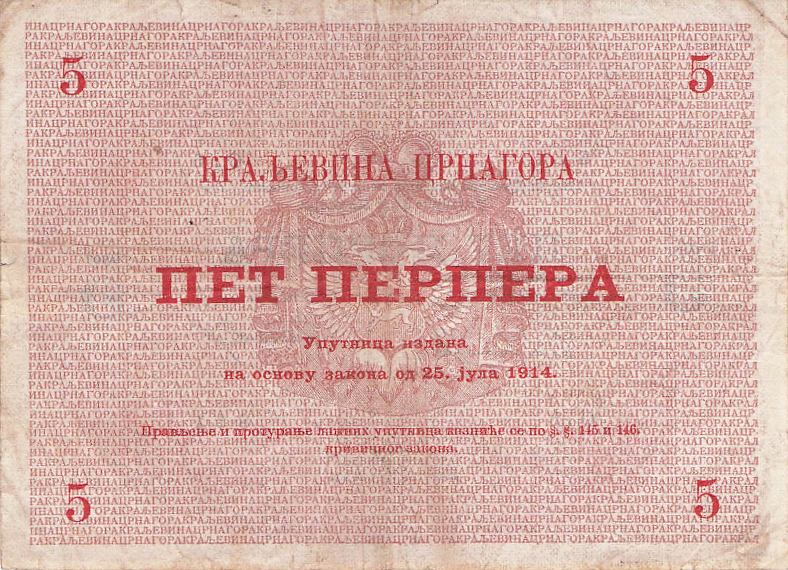 Montenegro P.017 - 5 Perpera 1914 VF-