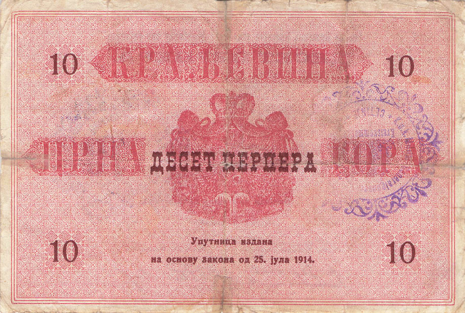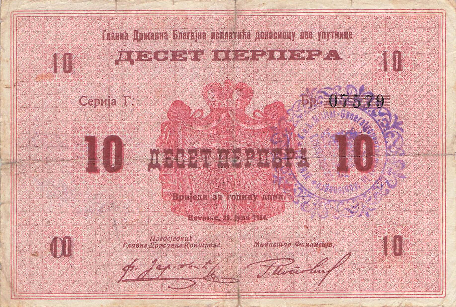 Montenegro P.M002 - 10 Perpera 1914 Cetinje F- repariert