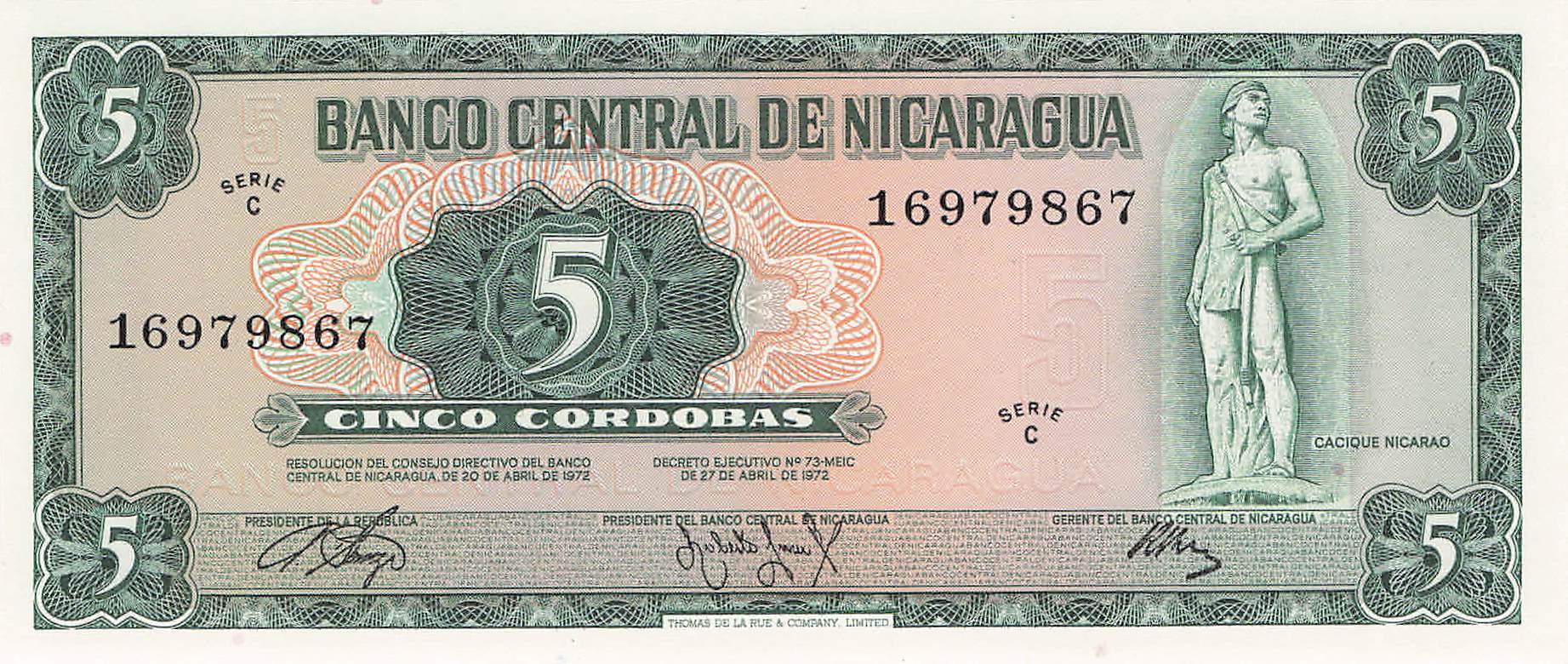 Nicaragua P.122 - 5 Córdobas 27.04.1972 UNC-