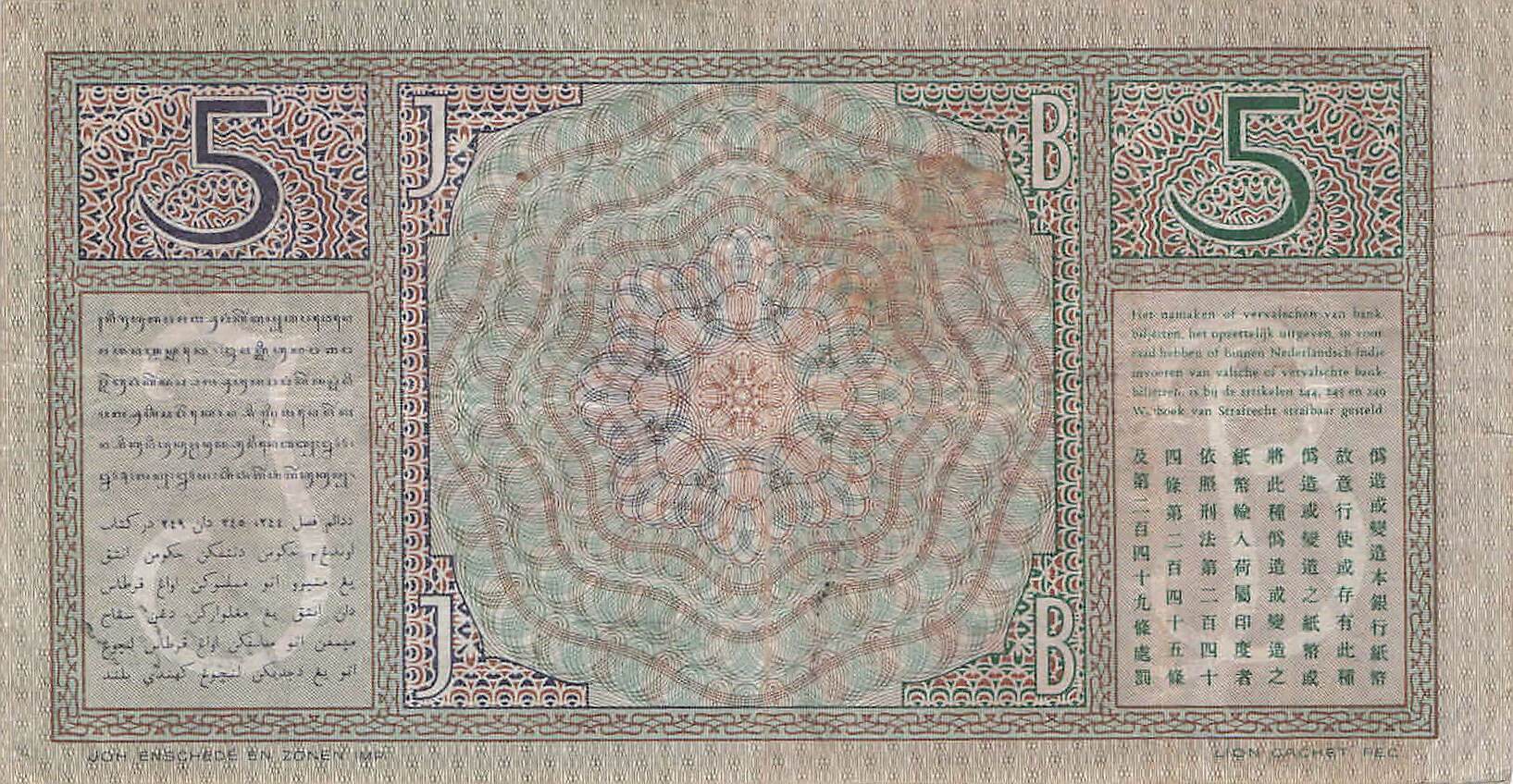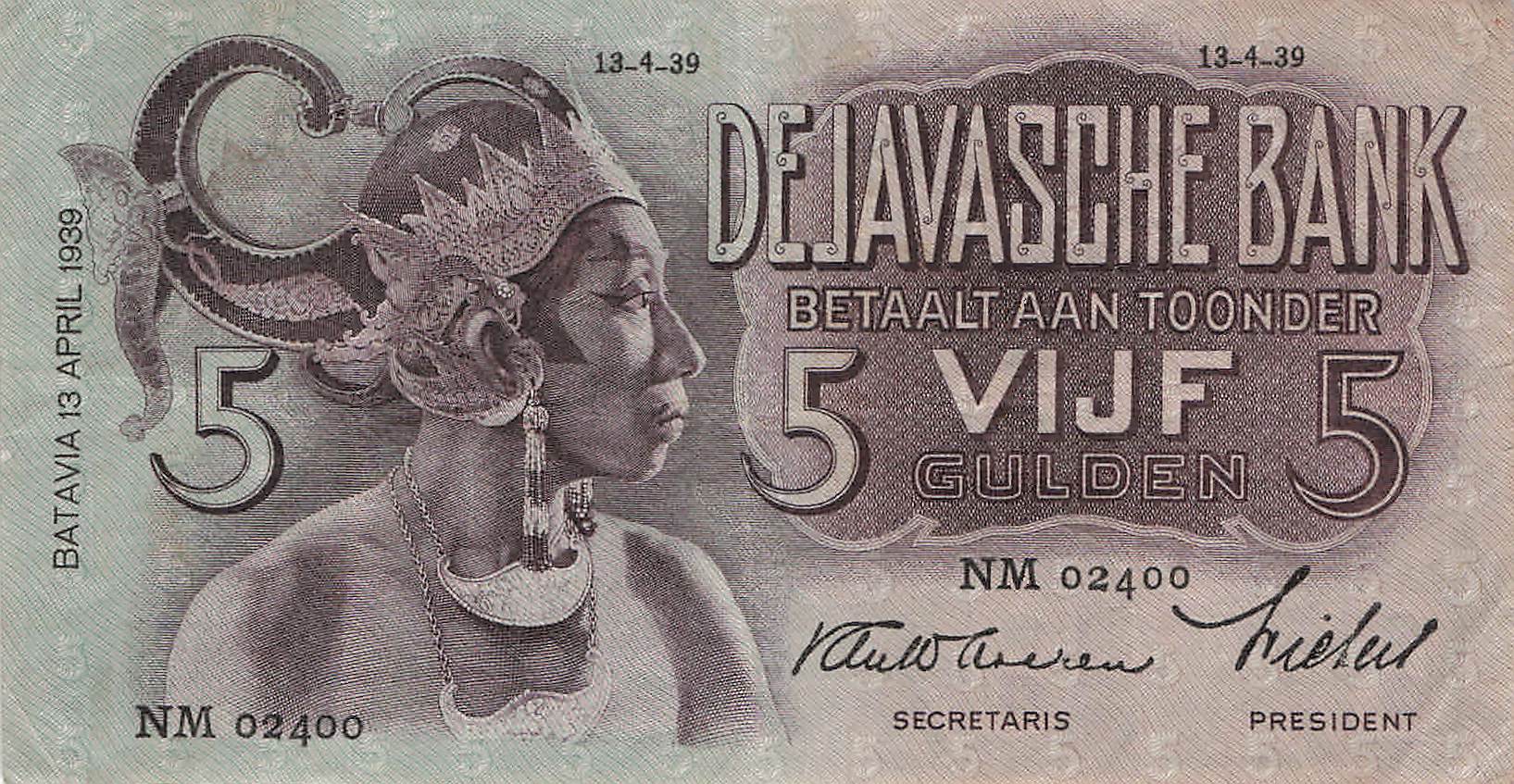 Niederländisch Indien P.078b - 5 Gulden 13.4.1939 VF