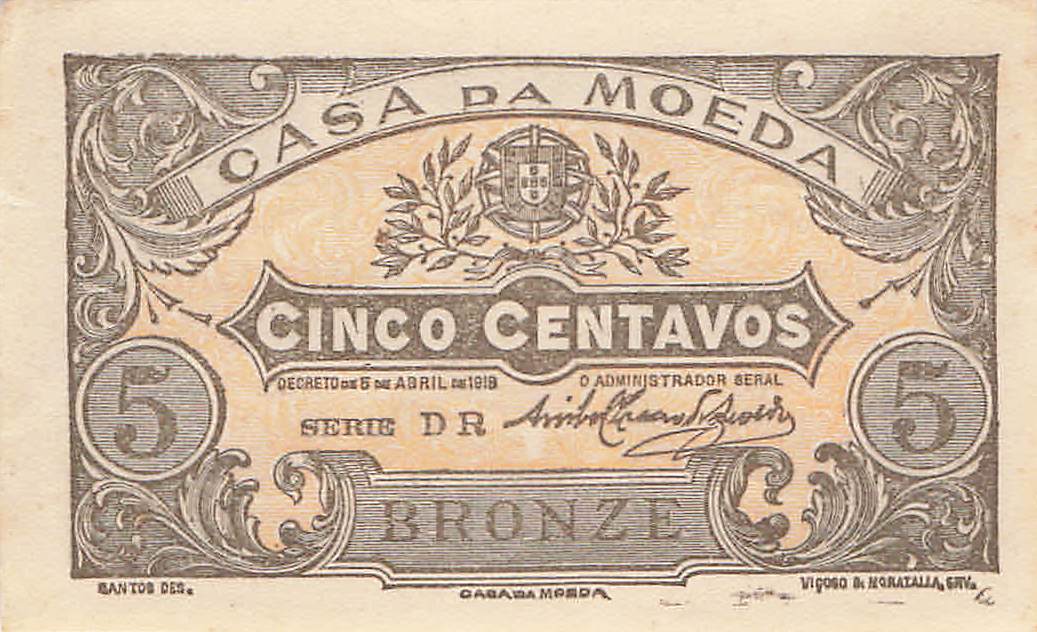 Portugal P.099 - 5 Centavos 05.4.1918 VF